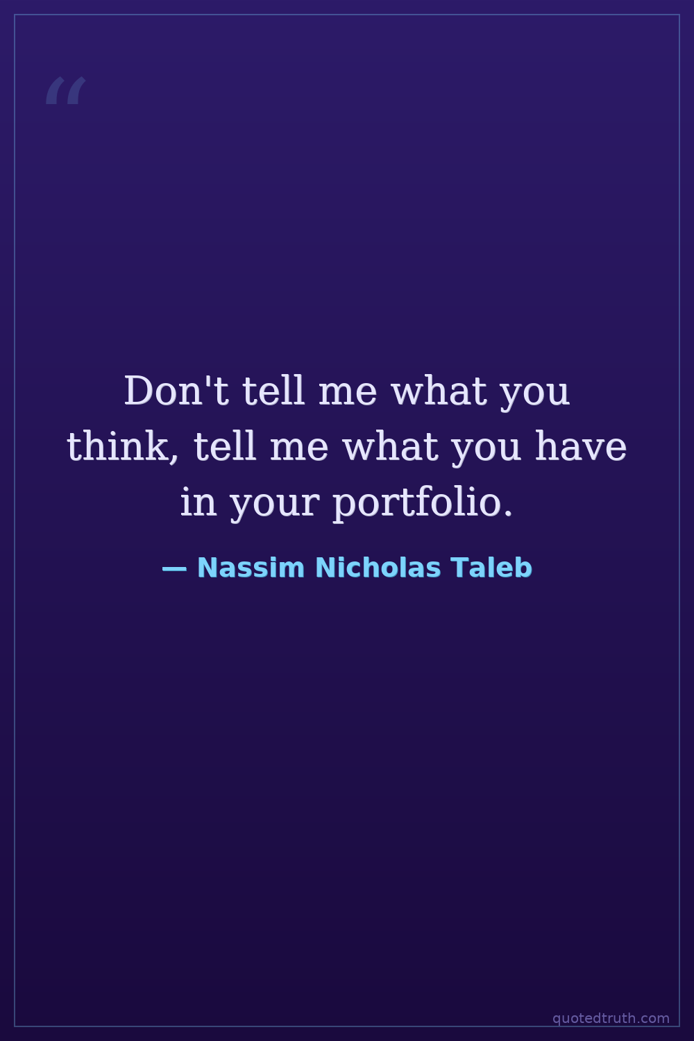 Don't tell me what you think, tell me what you have in your portfolio.