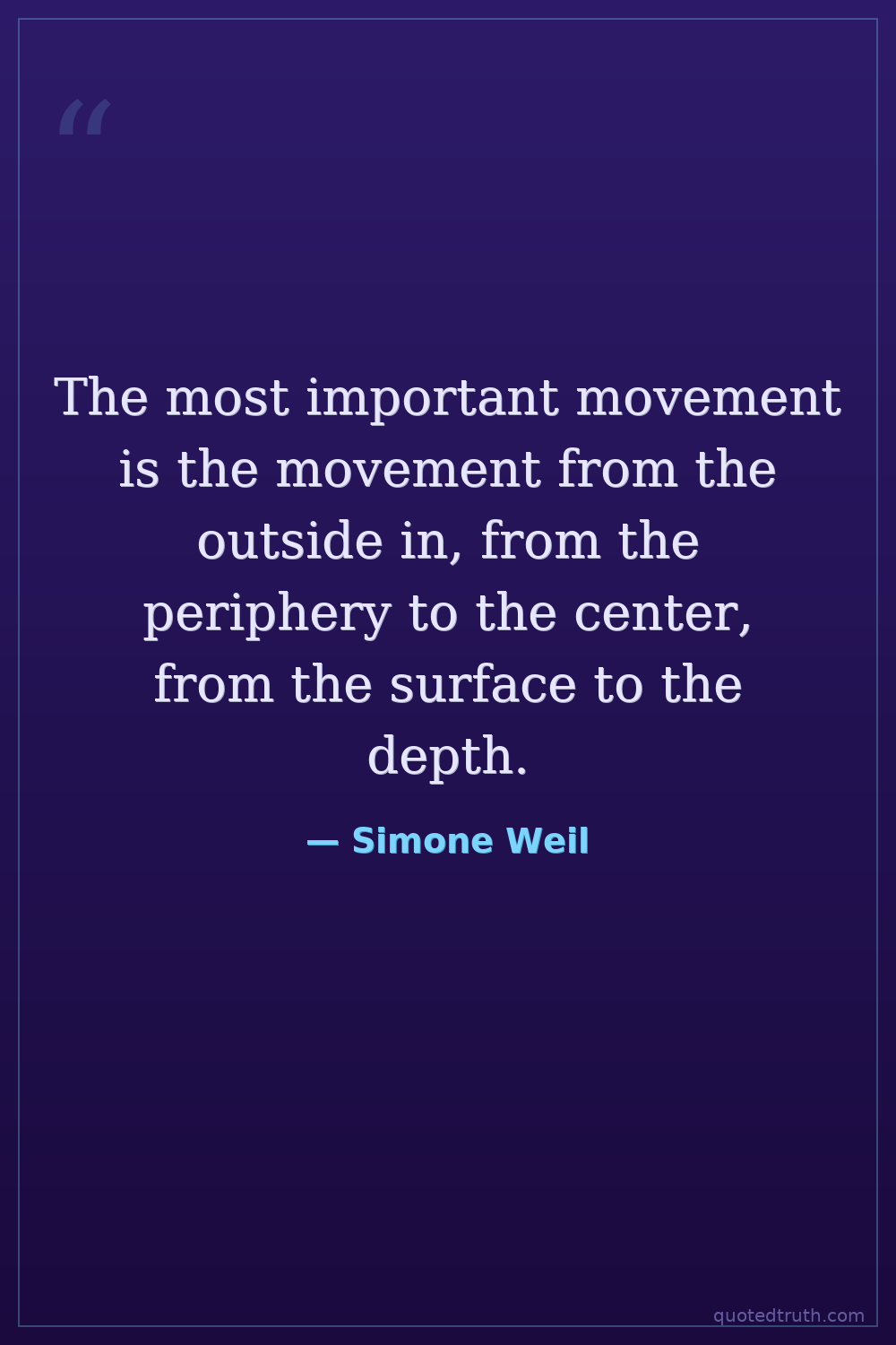 The most important movement is the movement from the outside in, from the periphery to the center, from the surface to the depth.