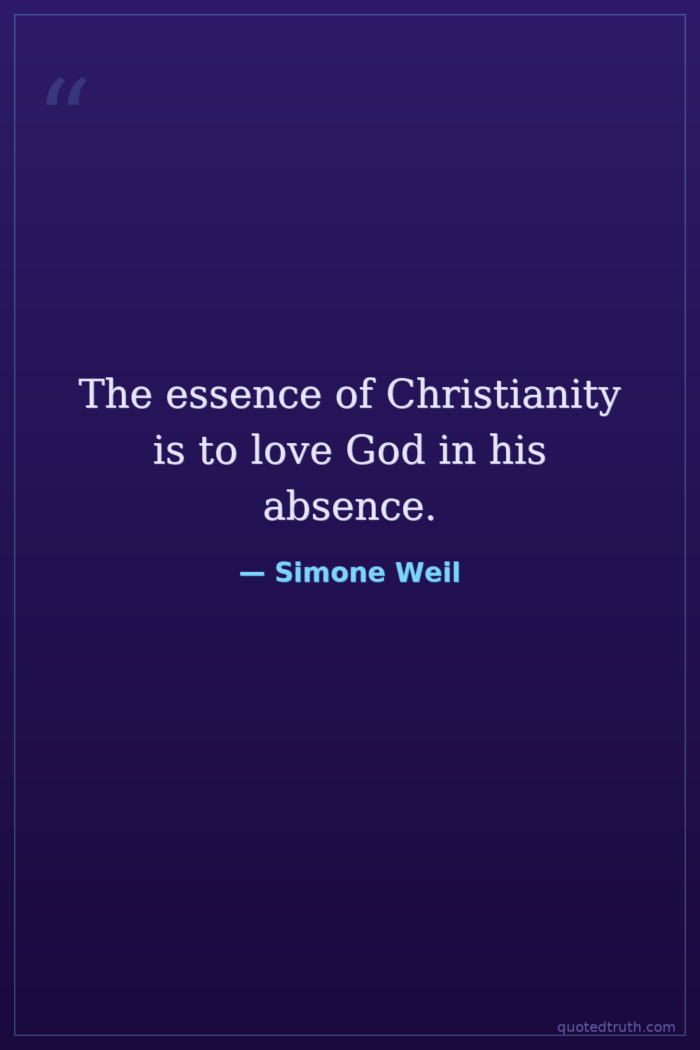 The essence of Christianity is to love God in his absence.
