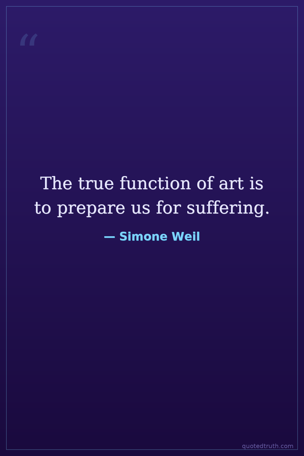 The true function of art is to prepare us for suffering.