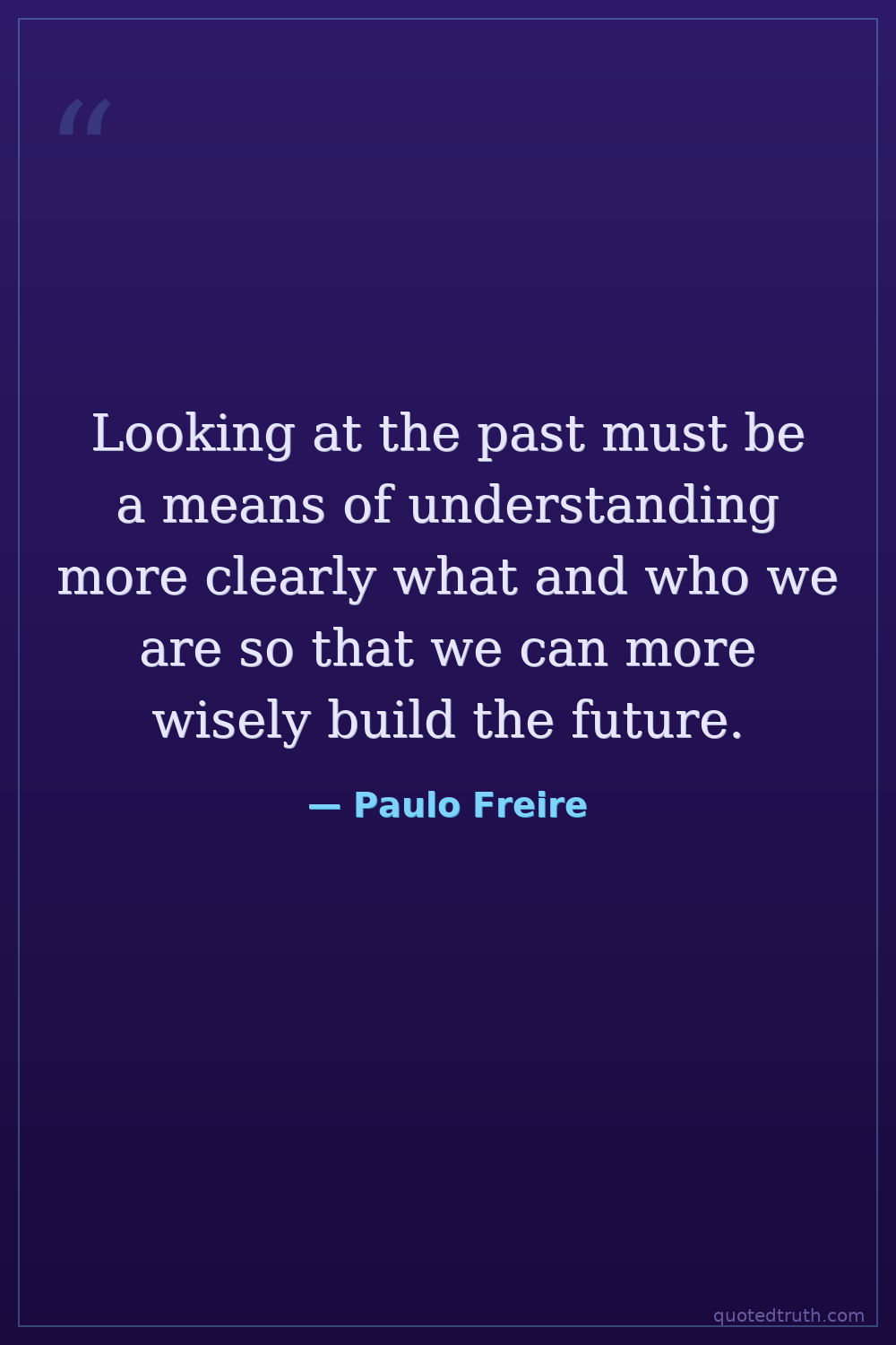 Looking at the past must be a means of understanding more clearly what and who we are so that we can more wisely build the future.