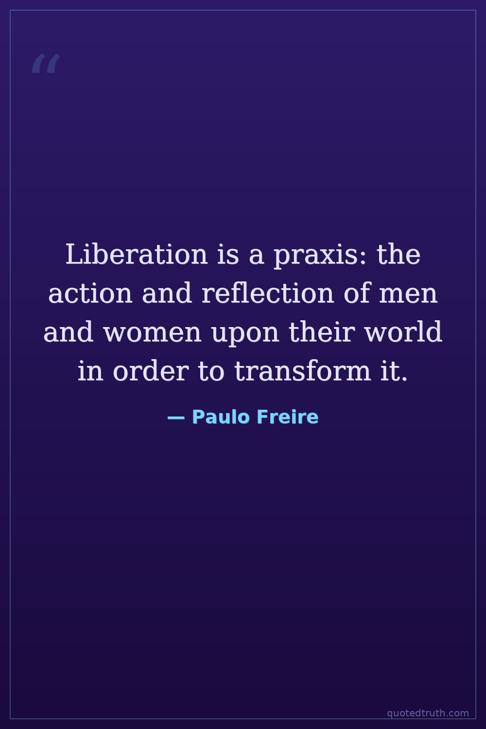 Liberation is a praxis: the action and reflection of men and women upon their world in order to transform it.