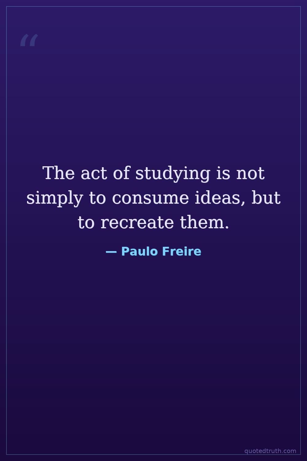 Paulo Freire — "The act of studying is not simply to consume ideas, but to recreate them."