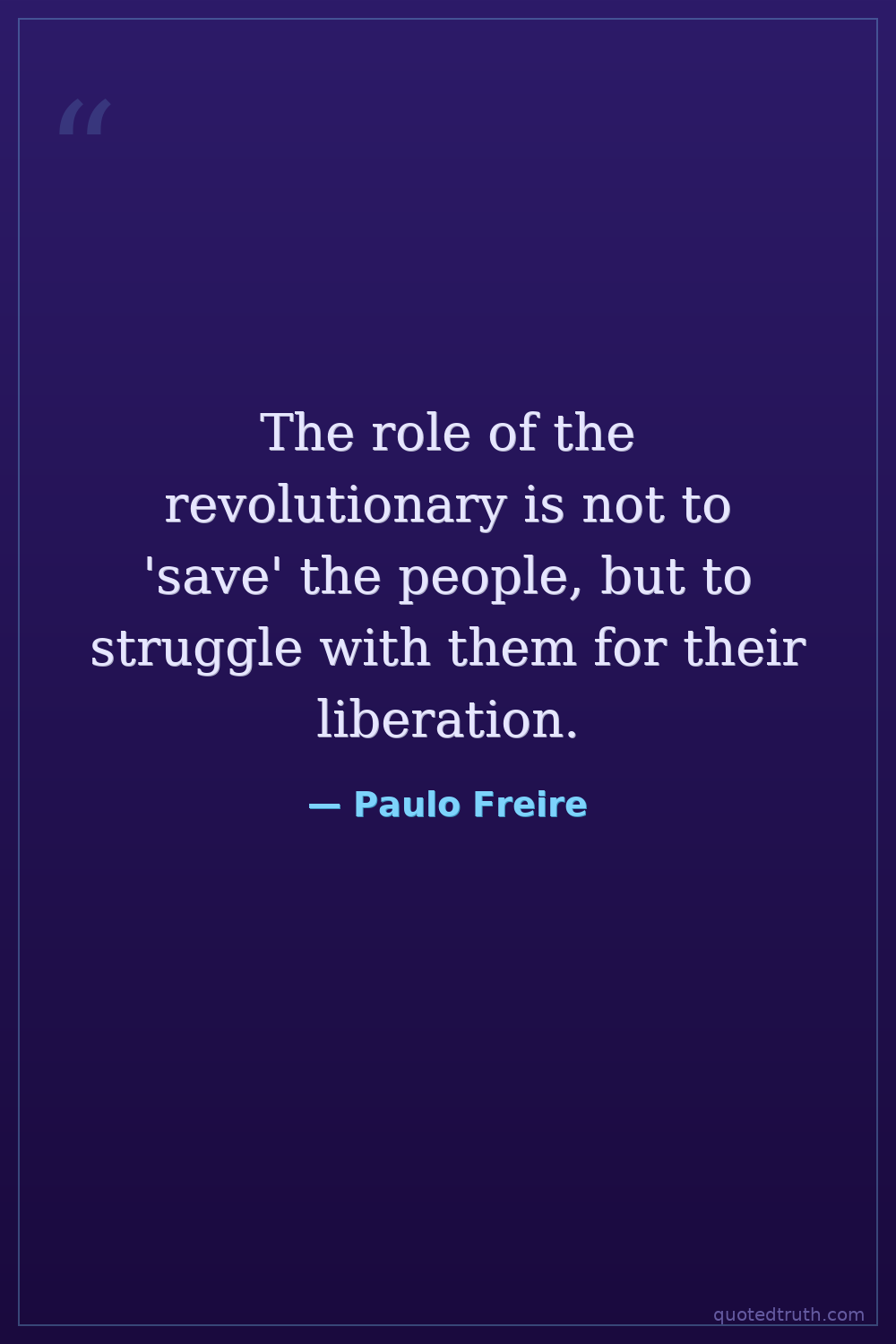 The role of the revolutionary is not to 'save' the people, but to struggle with them for their liberation.