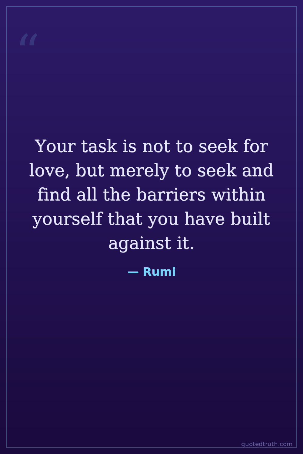 Your task is not to seek for love, but merely to seek and find all the barriers within yourself that you have built against it.