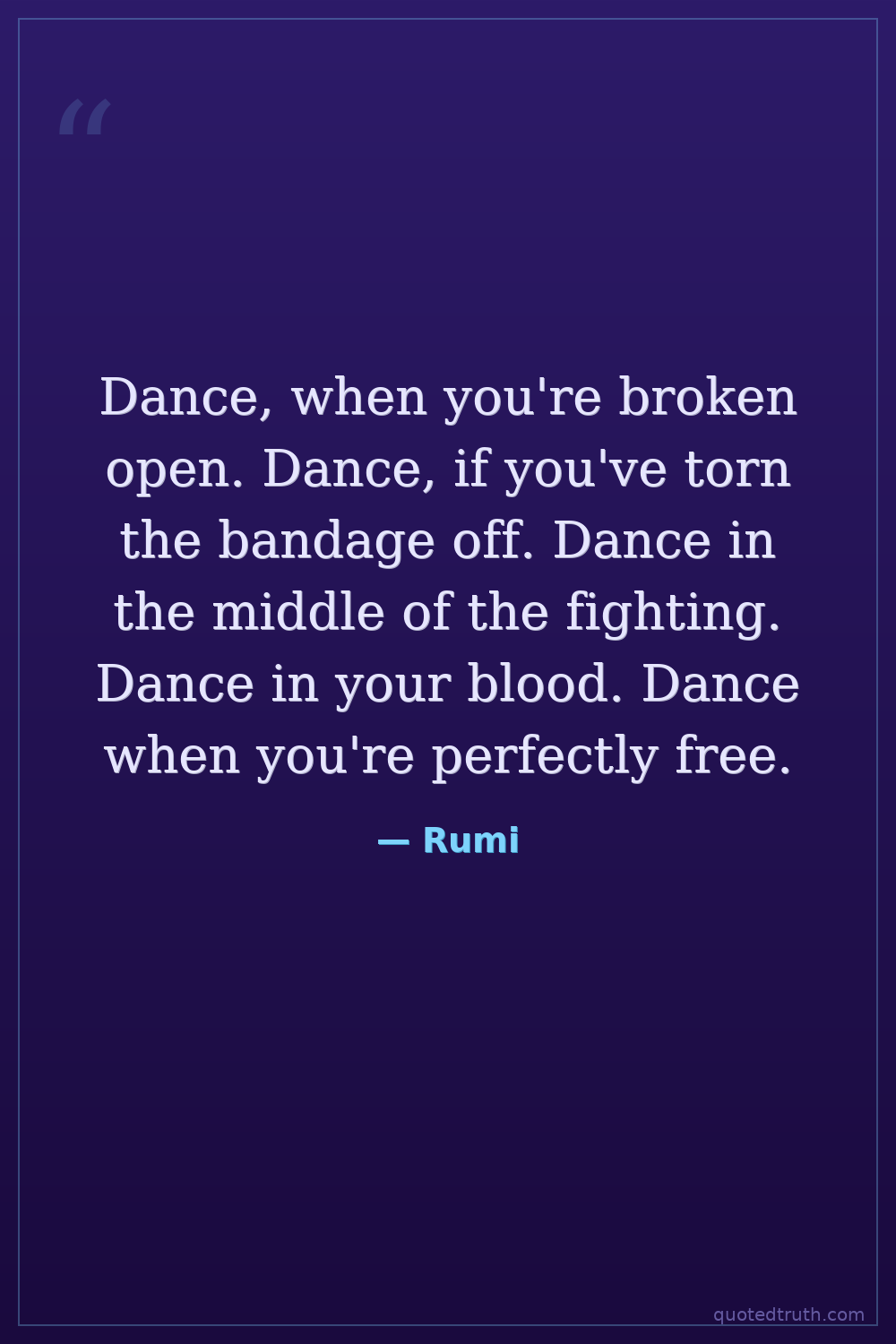 Dance, when you're broken open. Dance, if you've torn the bandage off. Dance in the middle of the fighting. Dance in your blood. Dance when you're perfectly free.