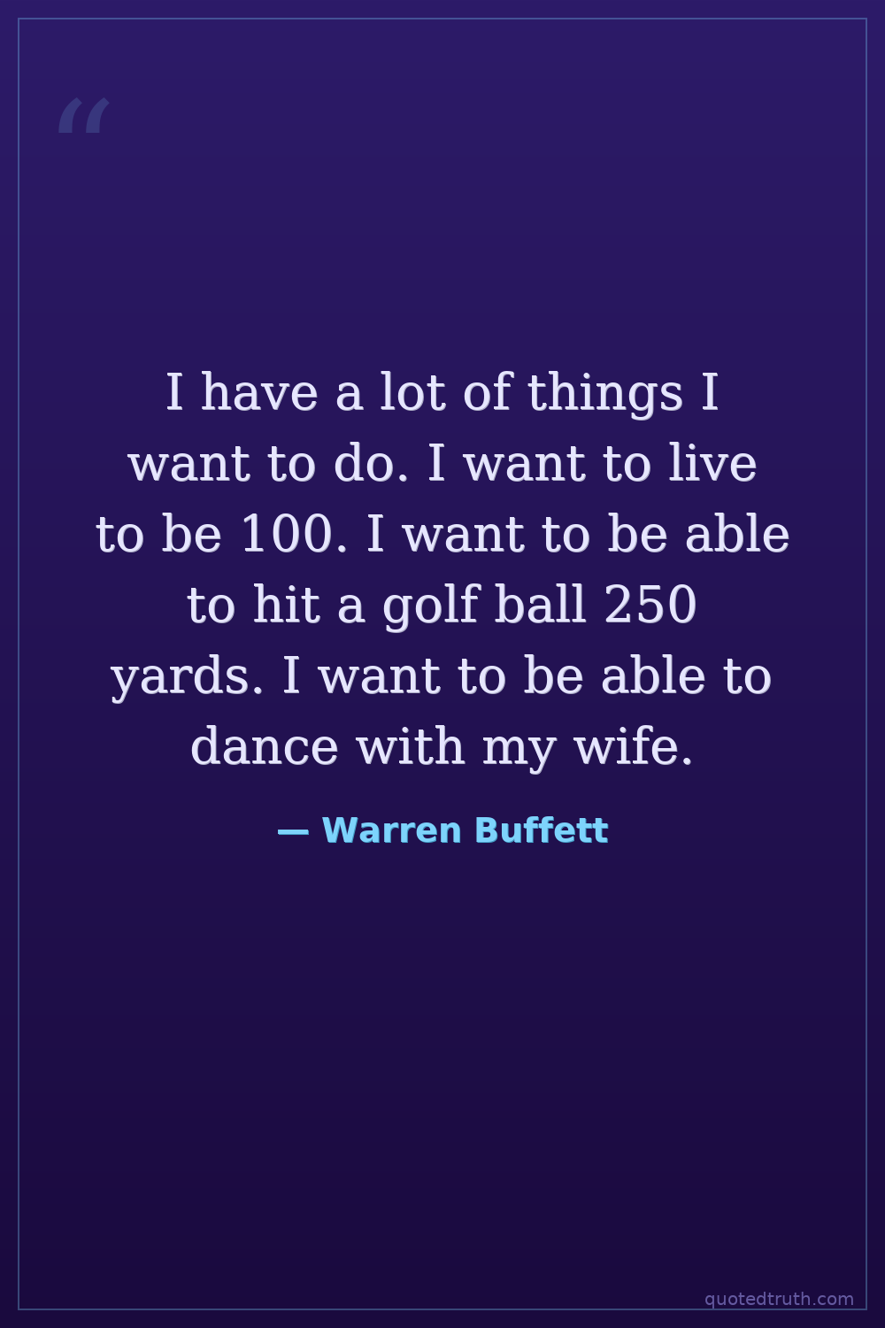 I have a lot of things I want to do. I want to live to be 100. I want to be able to hit a golf ball 250 yards. I want to be able to dance with my wife.