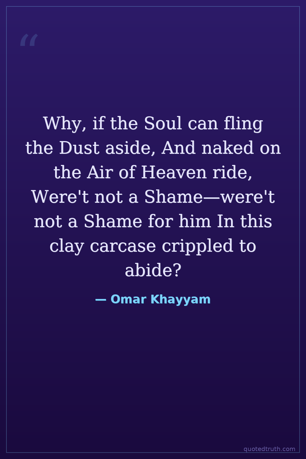 Why, if the Soul can fling the Dust aside, And naked on the Air of Heaven ride, Were't not a Shame—were't not a Shame for him In this clay carcase crippled to abide?