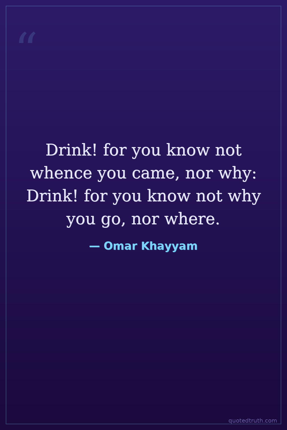 Drink! for you know not whence you came, nor why: Drink! for you know not why you go, nor where.