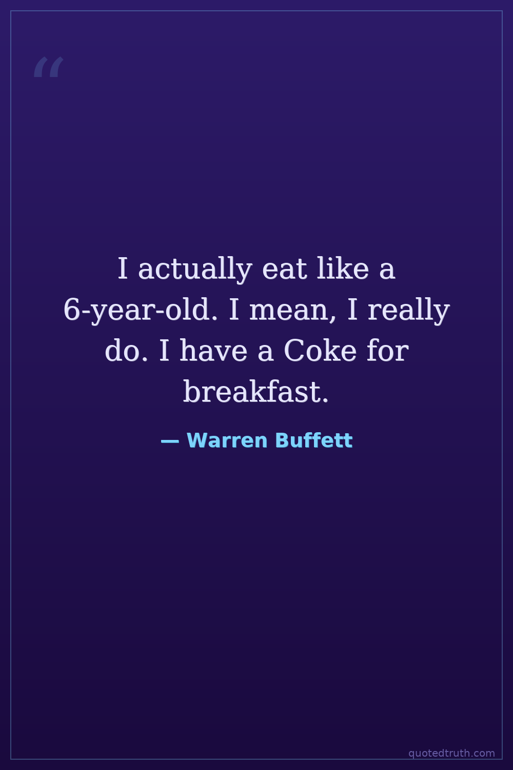 I actually eat like a 6-year-old. I mean, I really do. I have a Coke for breakfast.