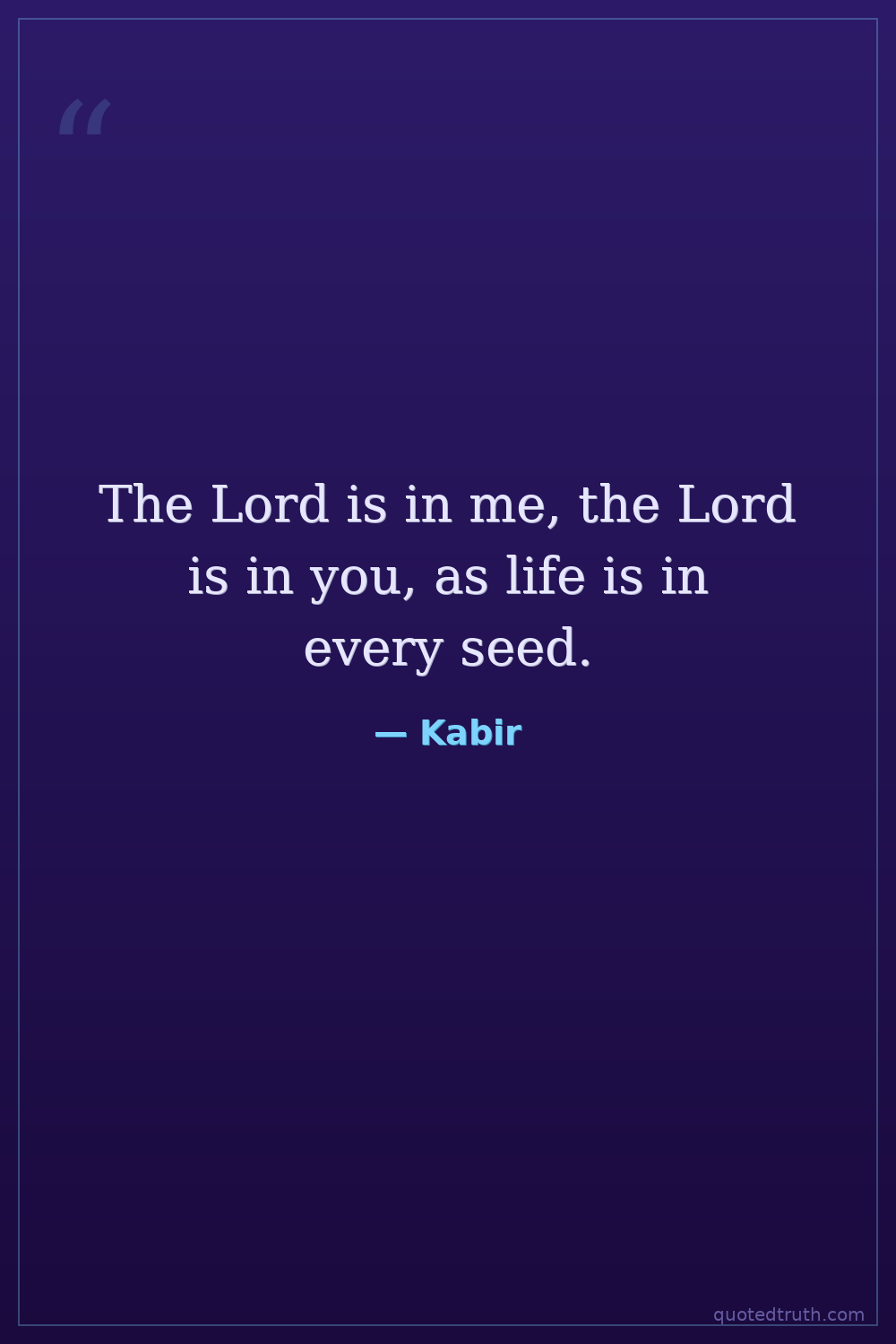 The Lord is in me, the Lord is in you, as life is in every seed.