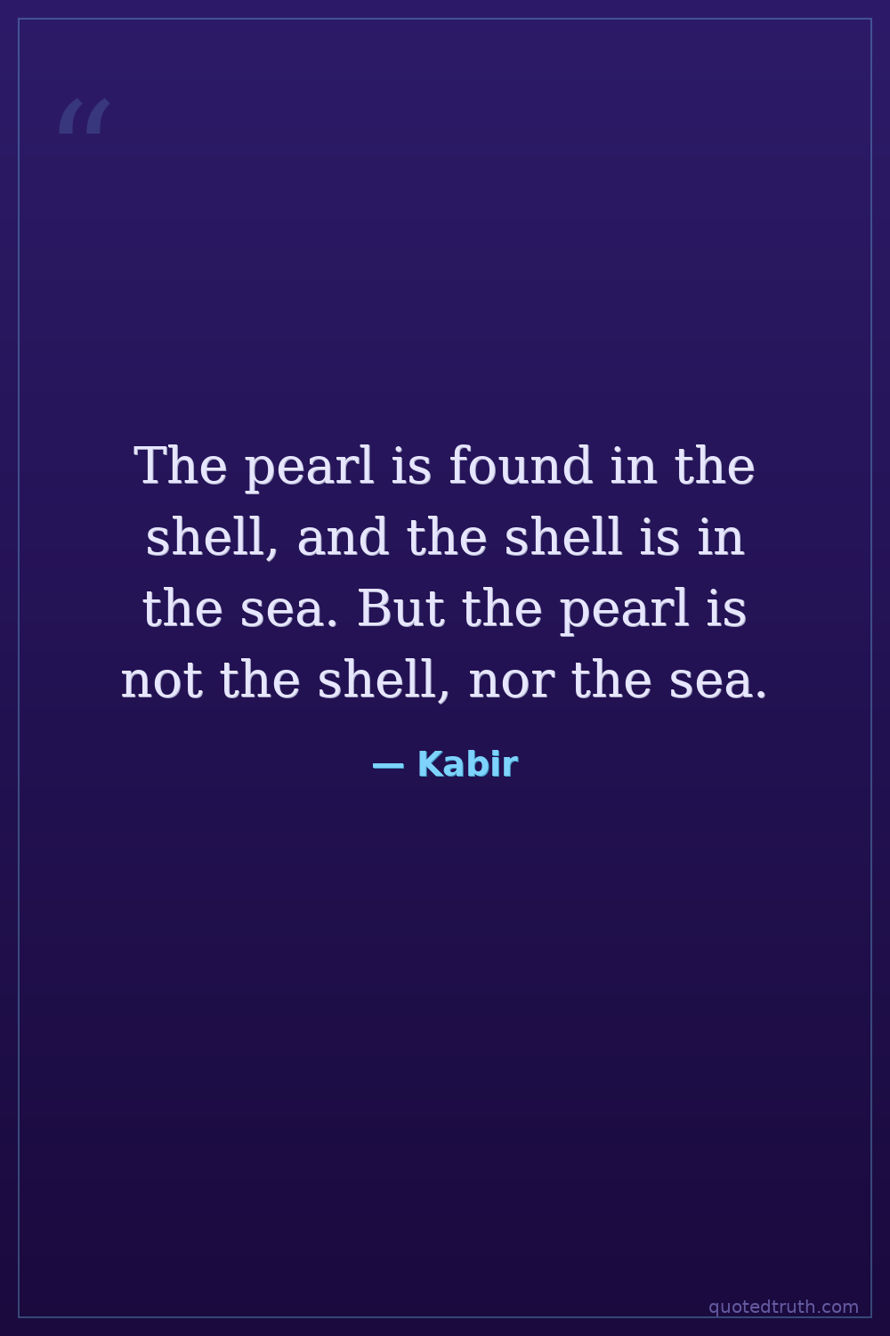 The pearl is found in the shell, and the shell is in the sea. But the pearl is not the shell, nor the sea.