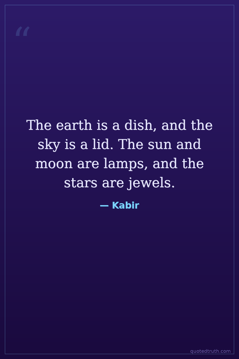 The earth is a dish, and the sky is a lid. The sun and moon are lamps, and the stars are jewels.