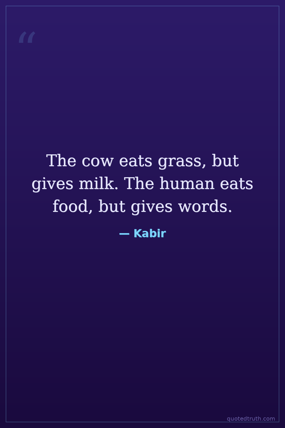 The cow eats grass, but gives milk. The human eats food, but gives words.