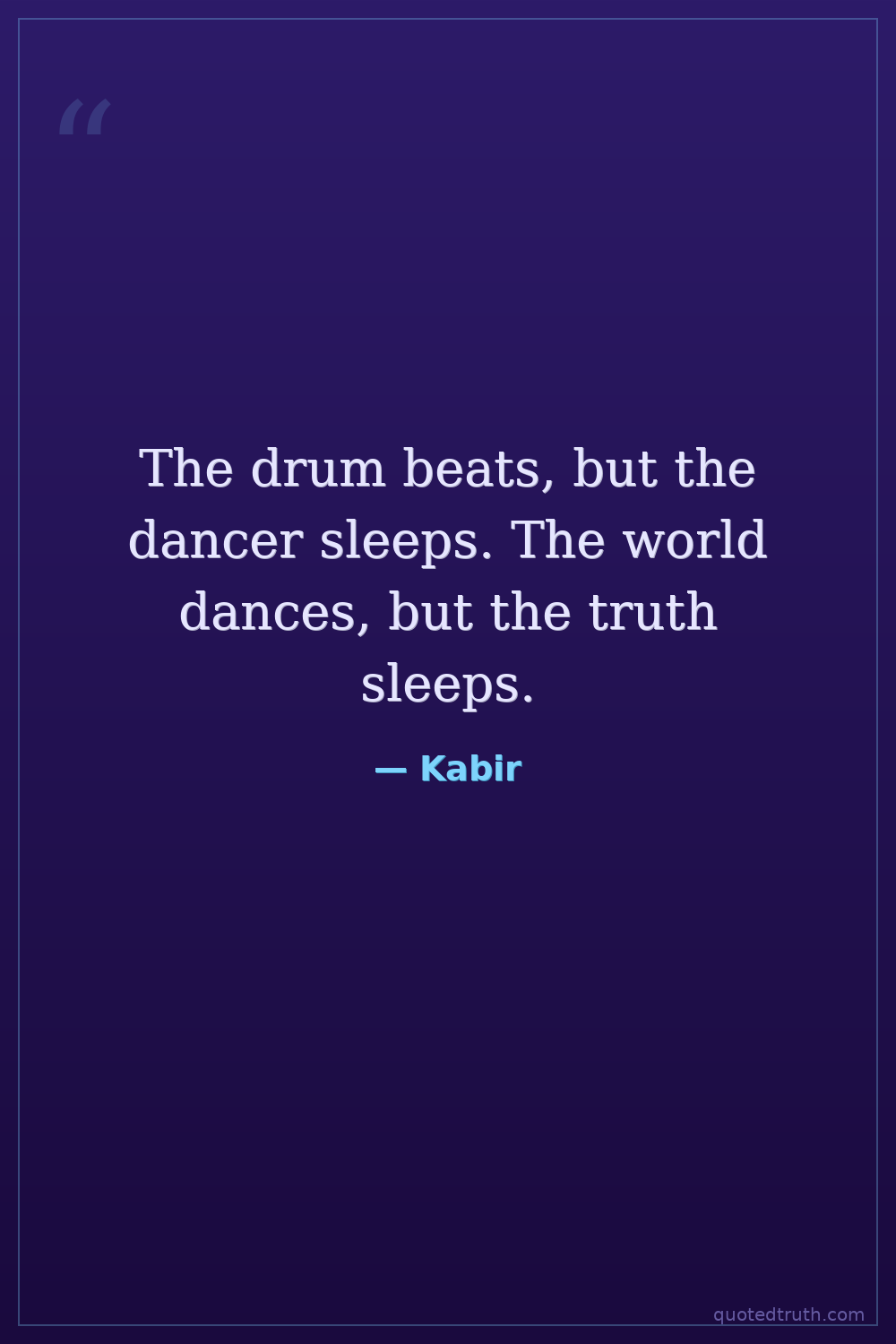 The drum beats, but the dancer sleeps. The world dances, but the truth sleeps.
