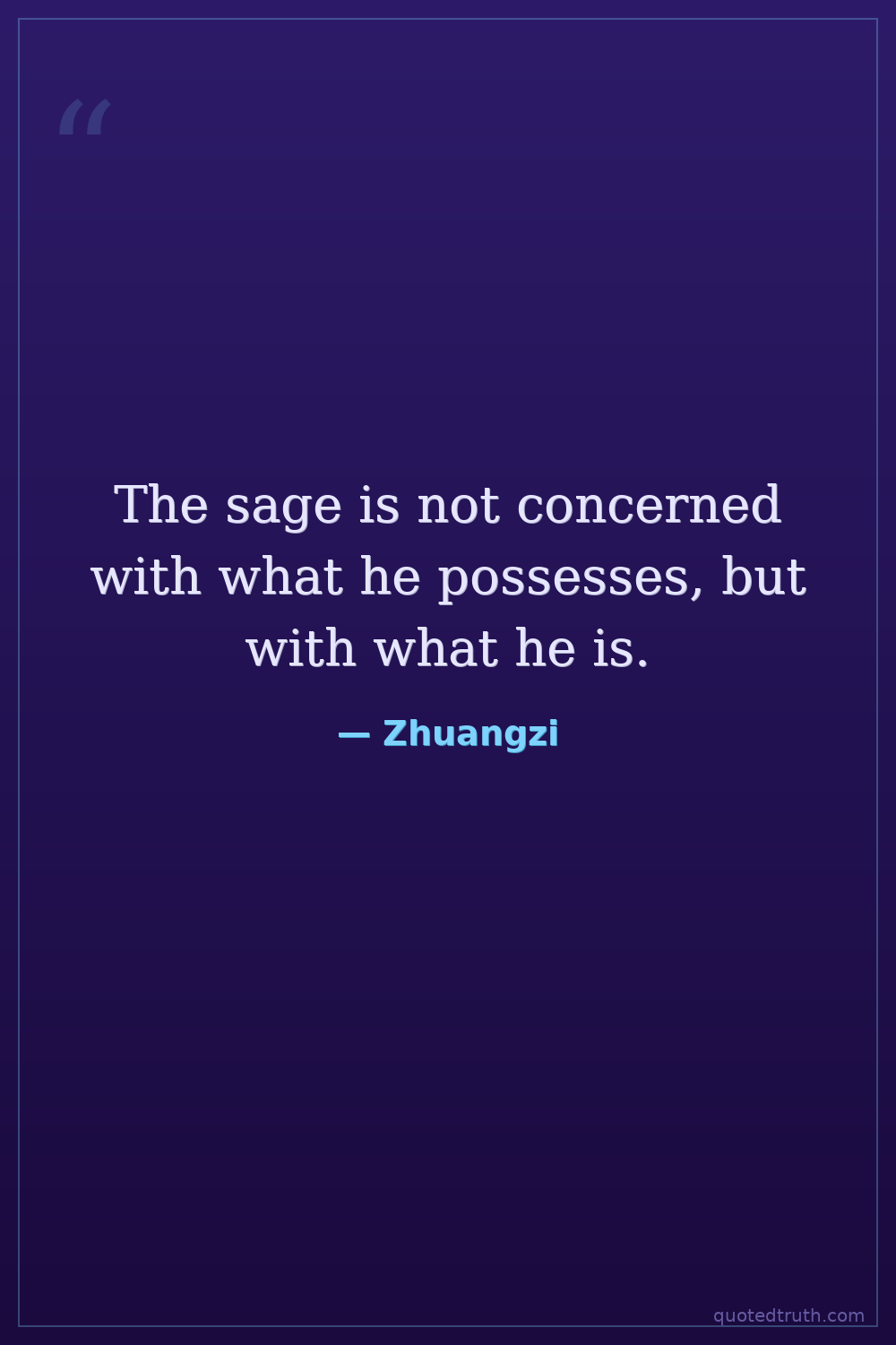 The sage is not concerned with what he possesses, but with what he is.