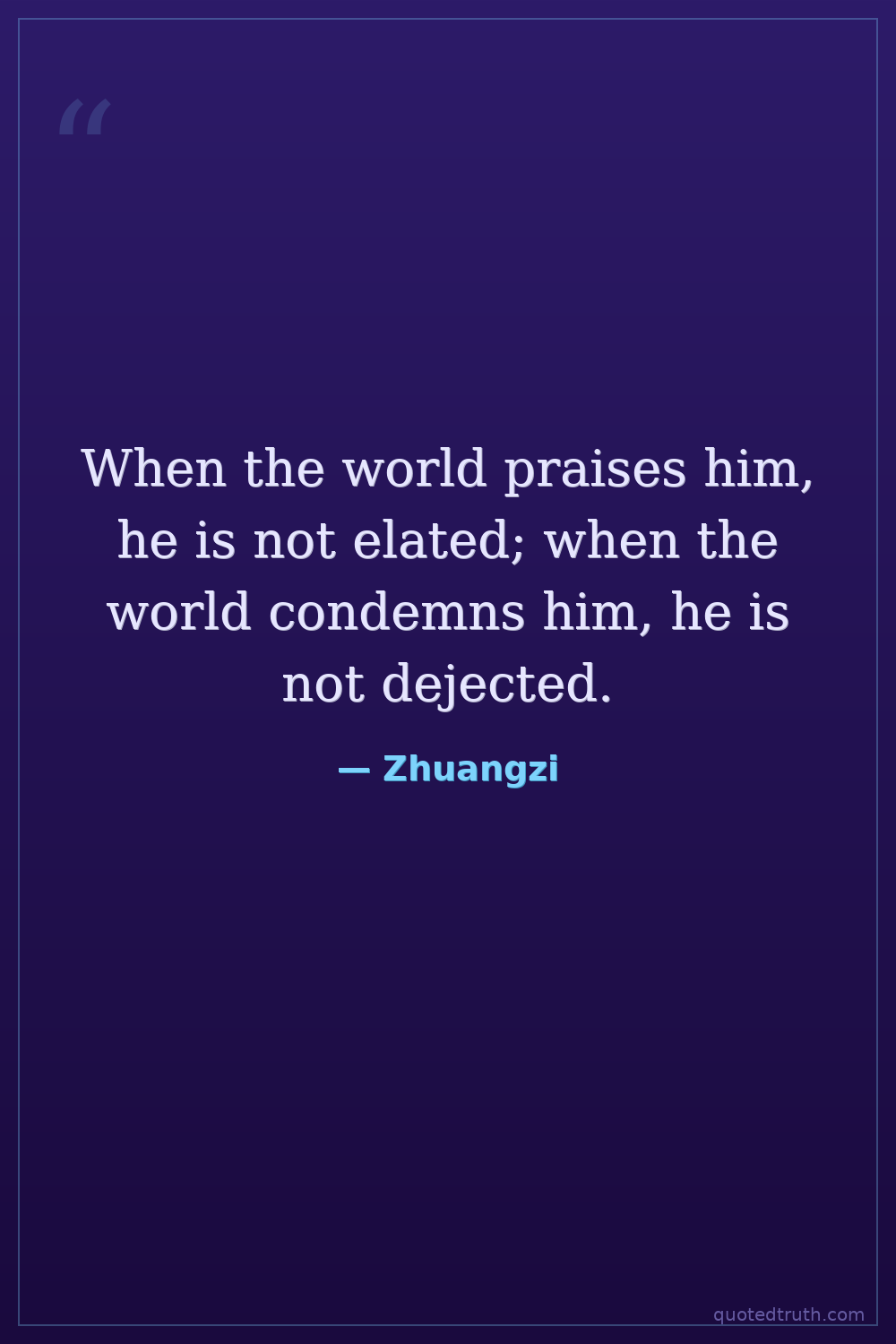 When the world praises him, he is not elated; when the world condemns him, he is not dejected.