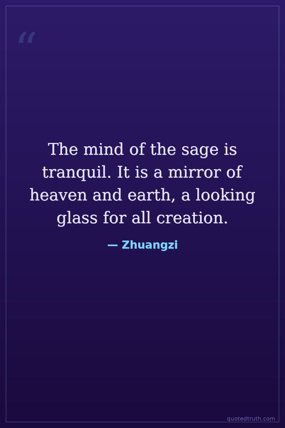 The mind of the sage is tranquil. It is a mirror of heaven and earth, a looking glass for all creation.