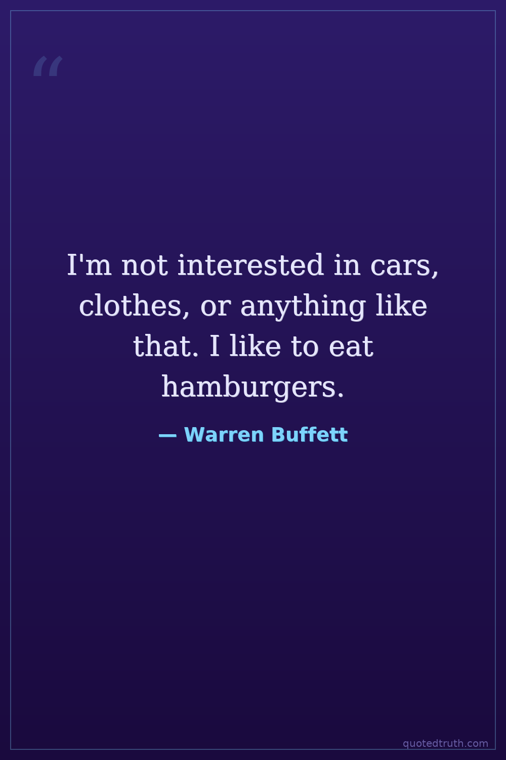 I'm not interested in cars, clothes, or anything like that. I like to eat hamburgers.
