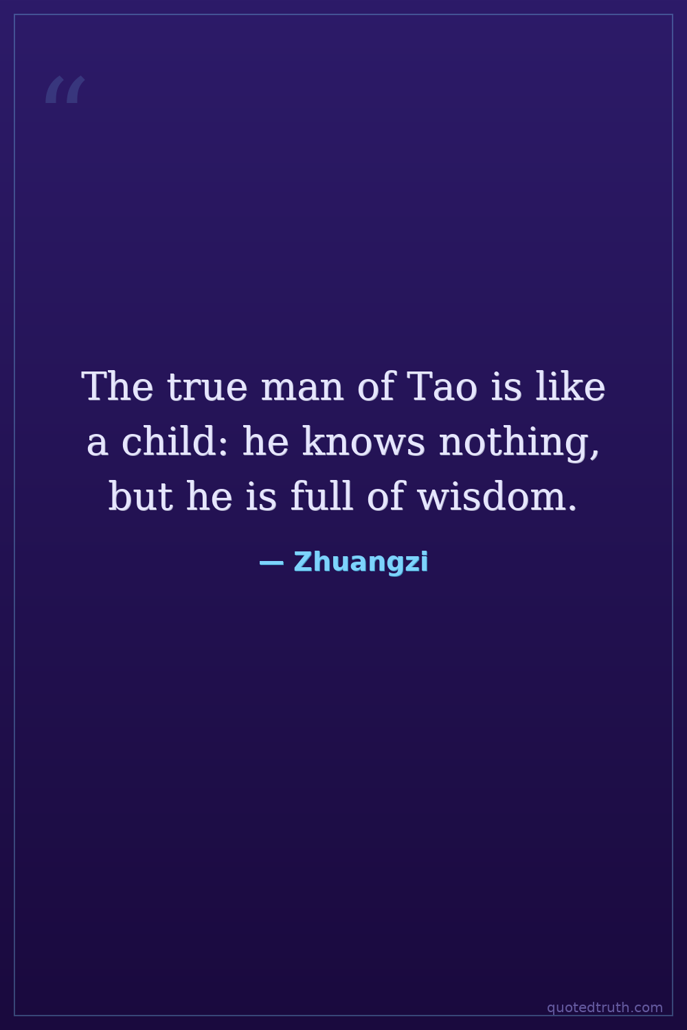 The true man of Tao is like a child: he knows nothing, but he is full of wisdom.