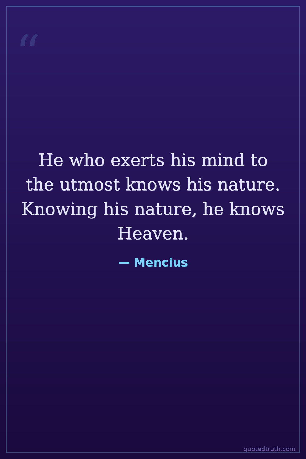 He who exerts his mind to the utmost knows his nature. Knowing his nature, he knows Heaven.