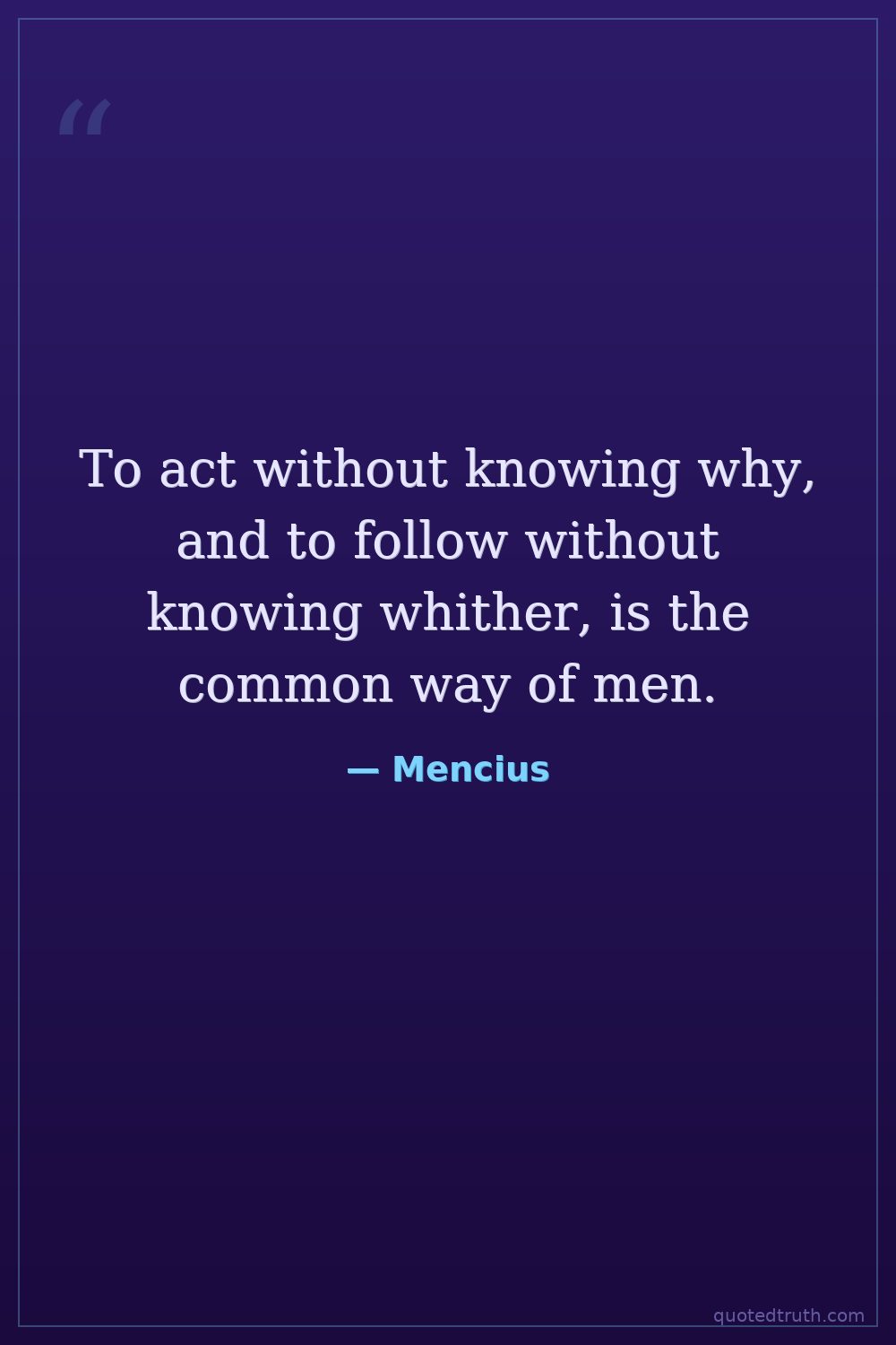 To act without knowing why, and to follow without knowing whither, is the common way of men.