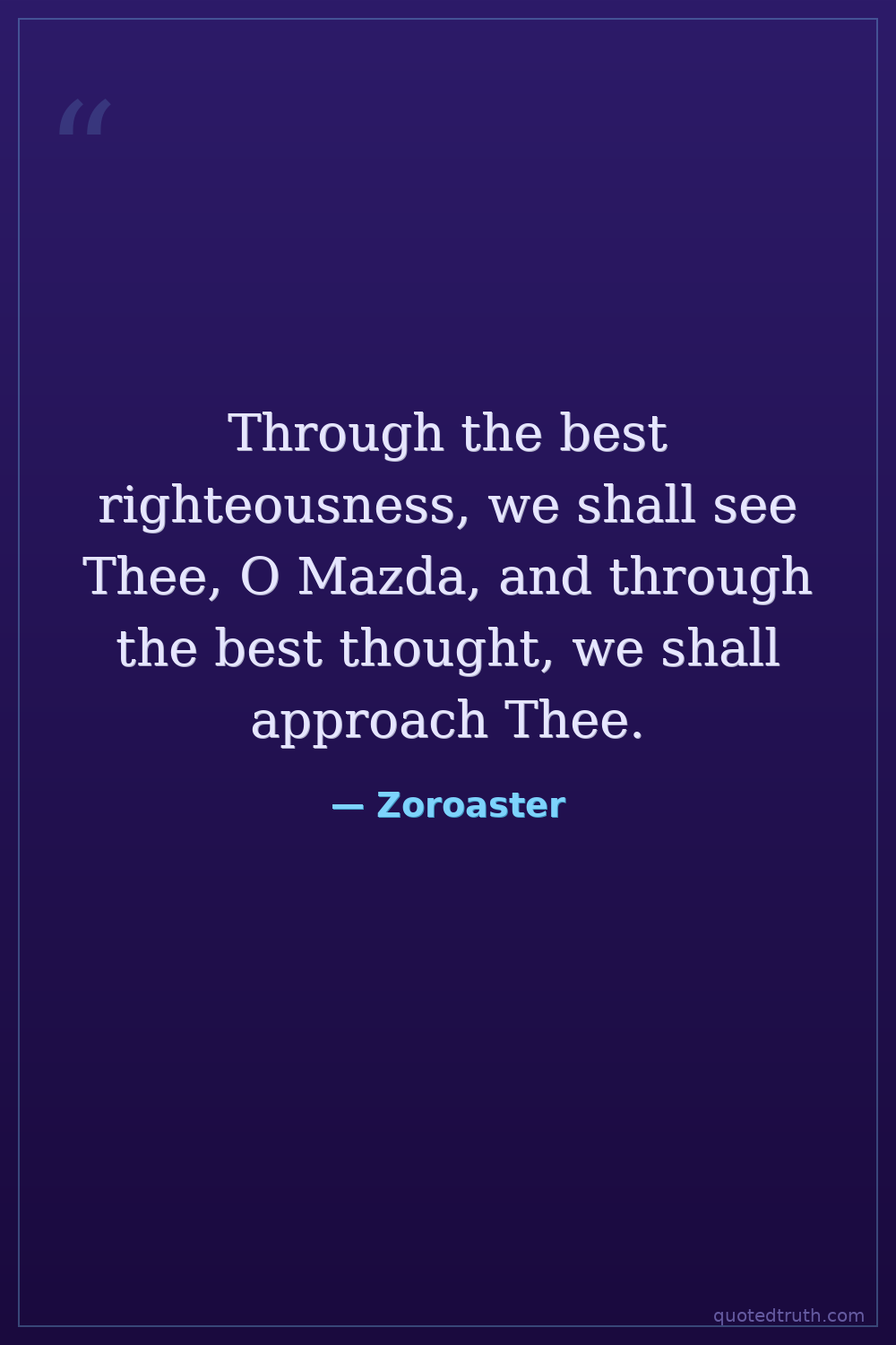 Through the best righteousness, we shall see Thee, O Mazda, and through the best thought, we shall approach Thee.