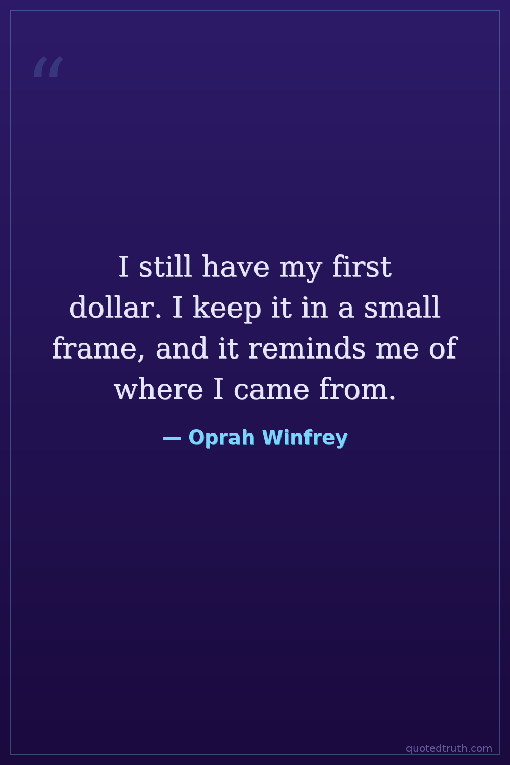 I still have my first dollar. I keep it in a small frame, and it reminds me of where I came from.