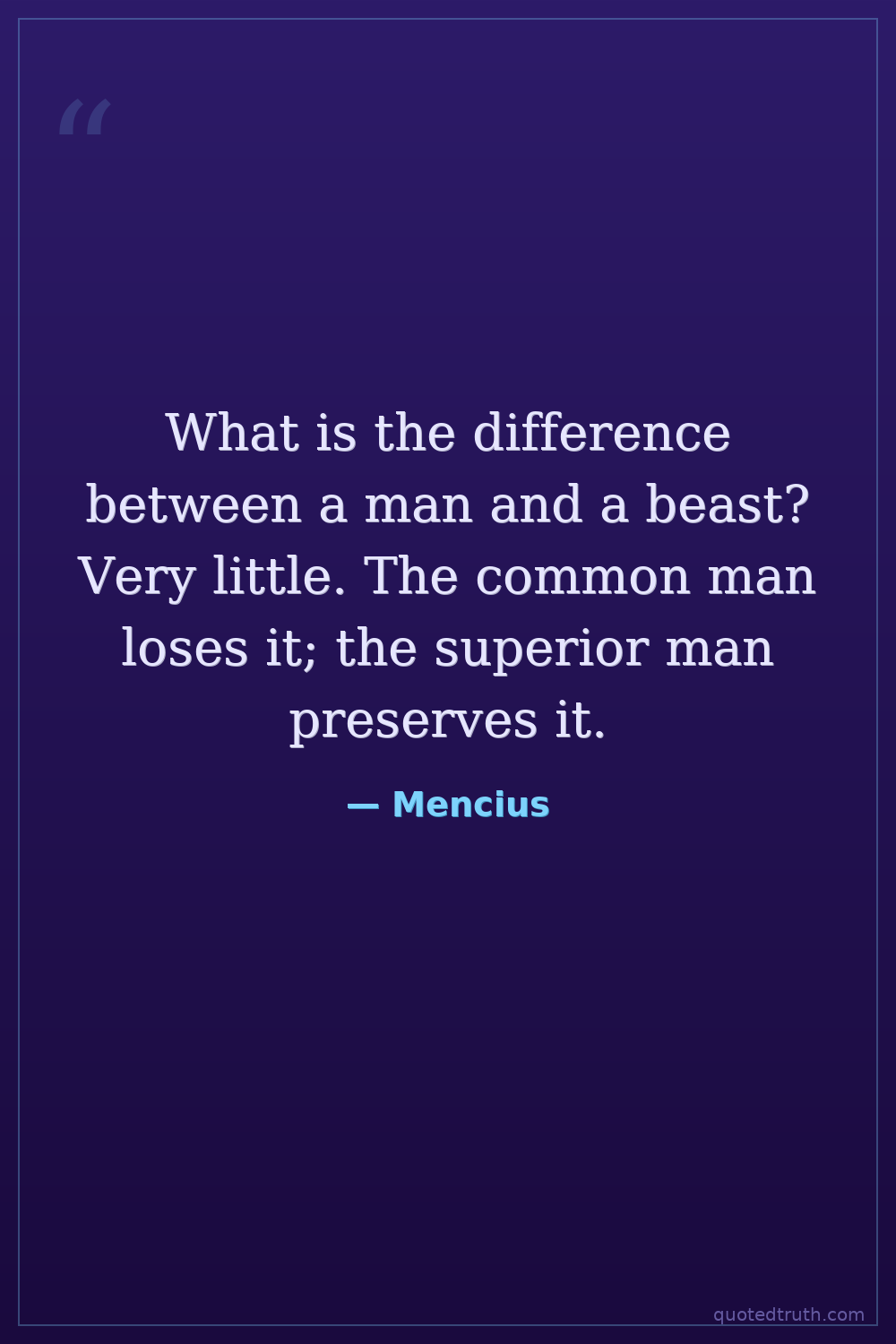What is the difference between a man and a beast? Very little. The common man loses it; the superior man preserves it.