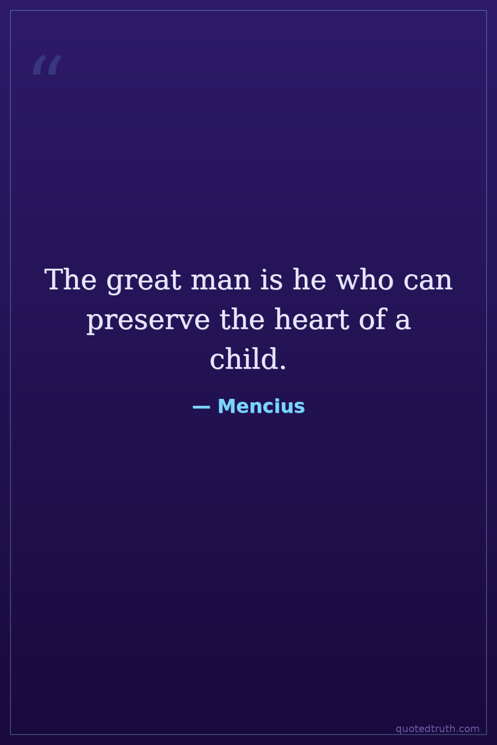 The great man is he who can preserve the heart of a child.