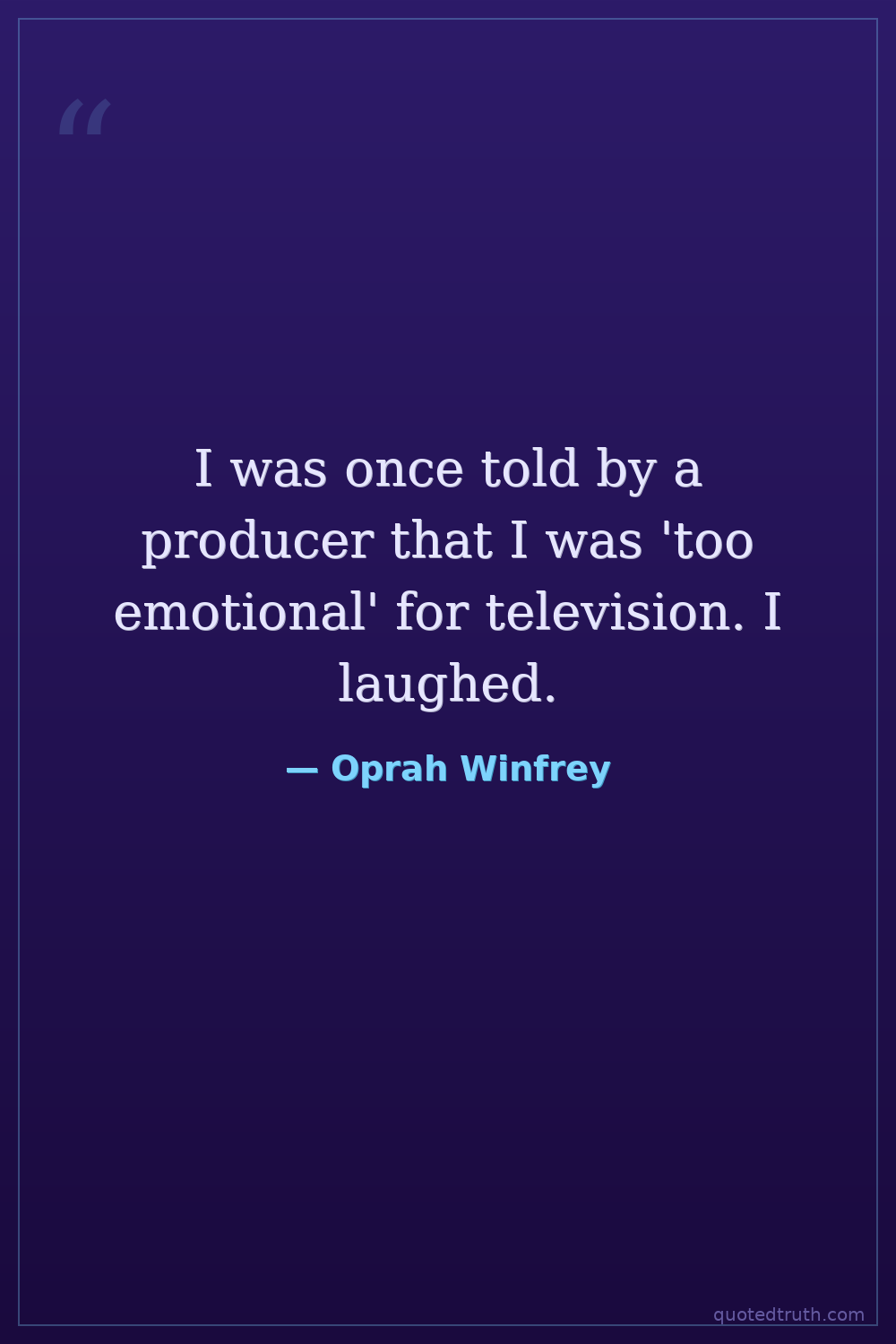 I was once told by a producer that I was 'too emotional' for television. I laughed.
