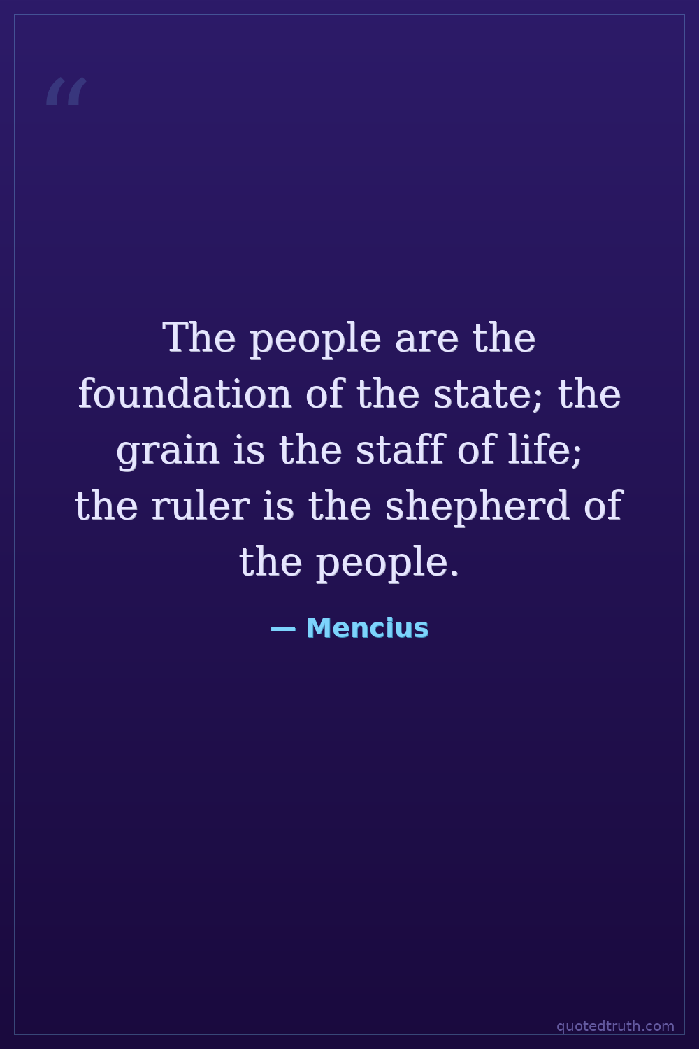 The people are the foundation of the state; the grain is the staff of life; the ruler is the shepherd of the people.