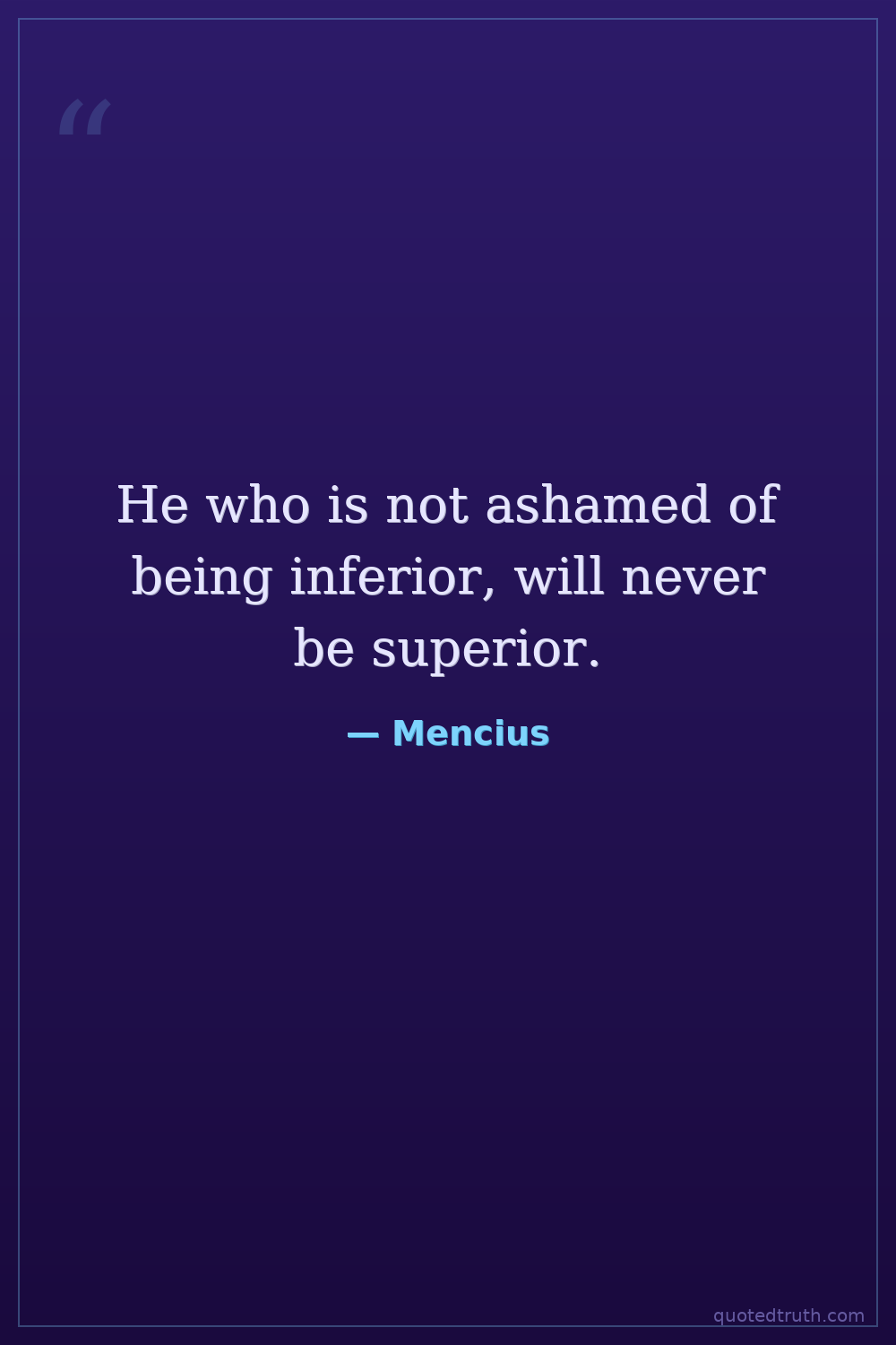 He who is not ashamed of being inferior, will never be superior.