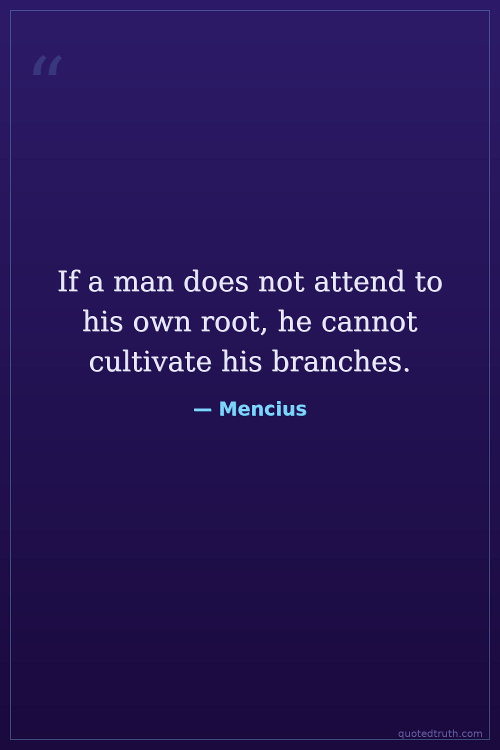 If a man does not attend to his own root, he cannot cultivate his branches.