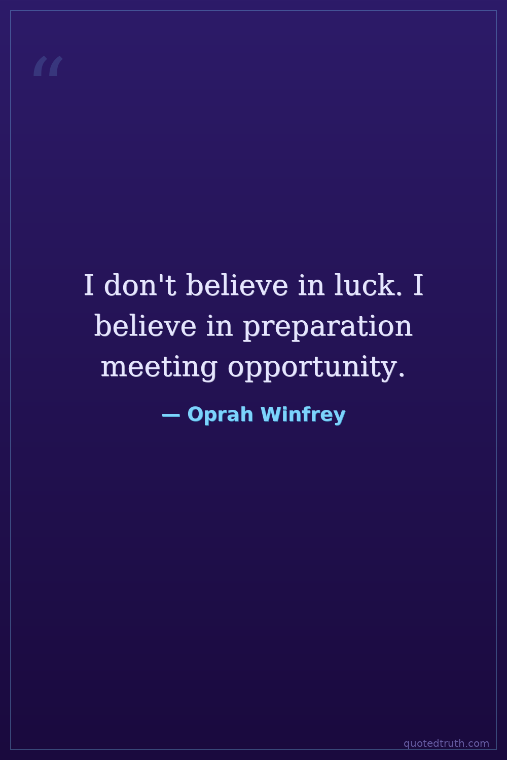 I don't believe in luck. I believe in preparation meeting opportunity.