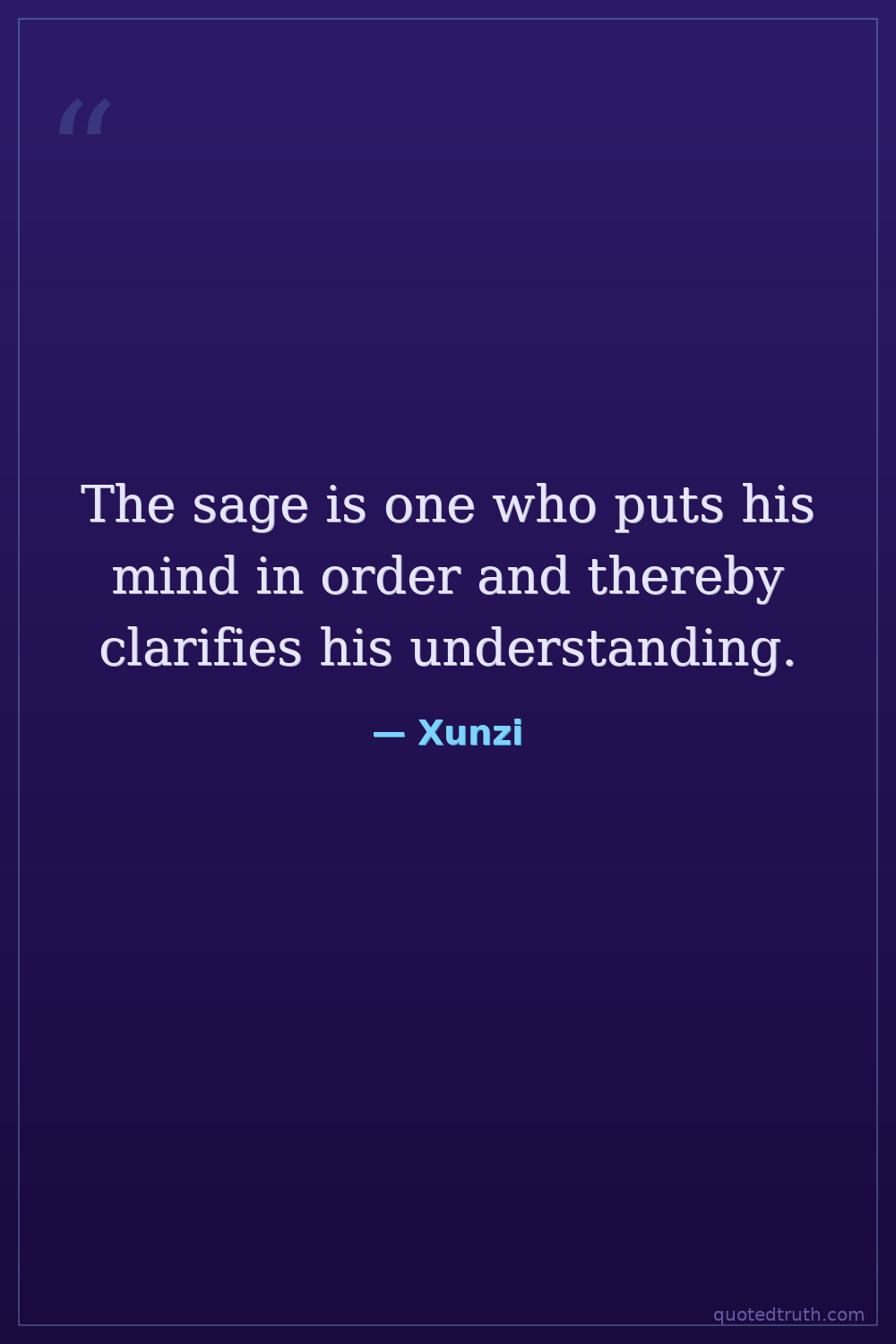 The sage is one who puts his mind in order and thereby clarifies his understanding.