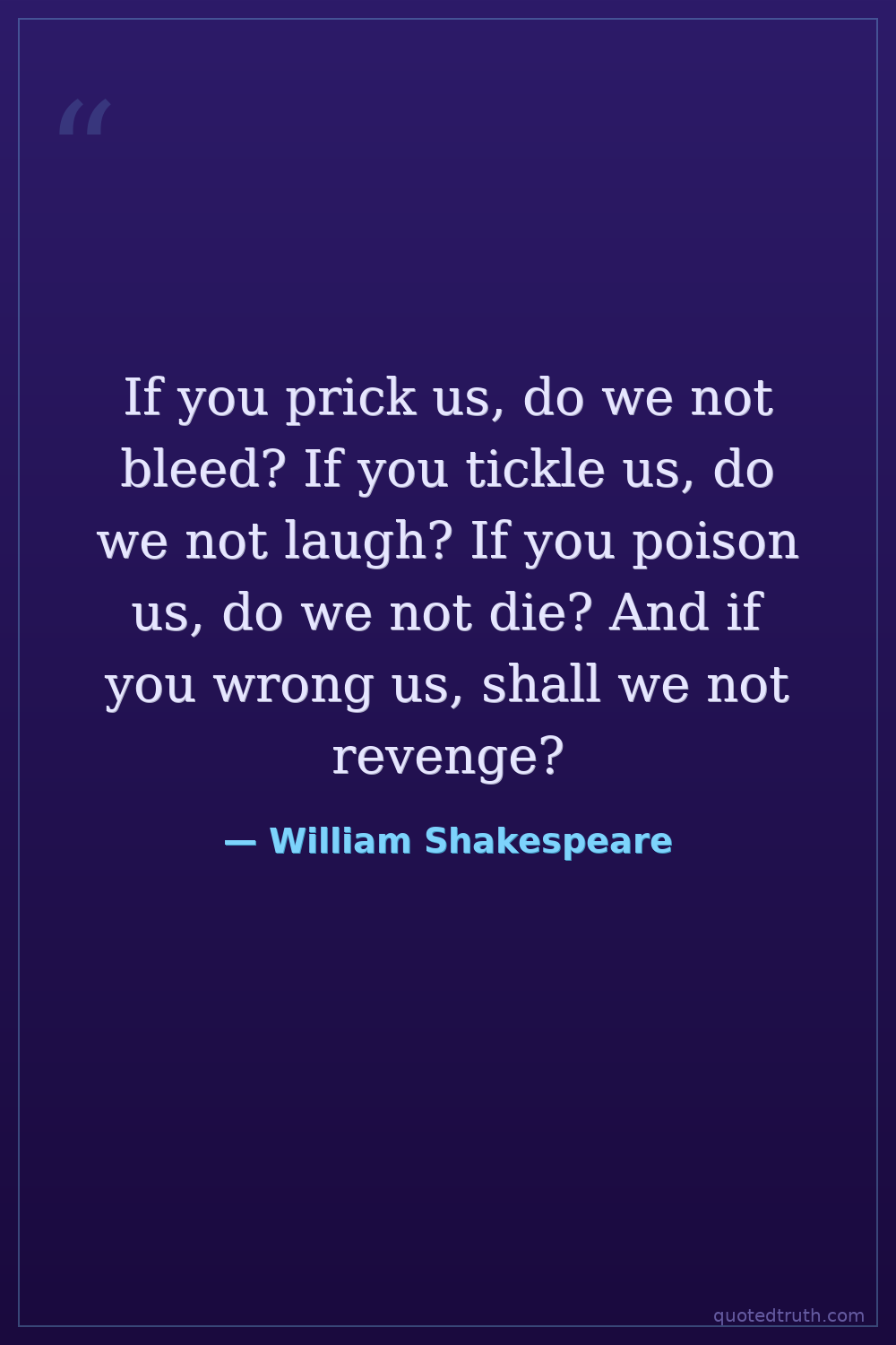 If you prick us, do we not bleed? If you tickle us, do we not laugh? If you poison us, do we not die? And if you wrong us, shall we not revenge?