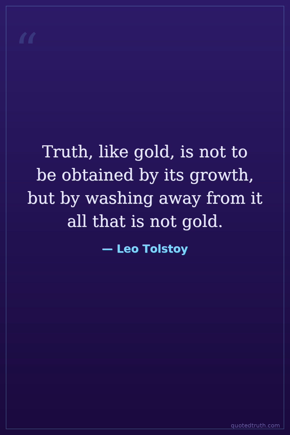 Truth, like gold, is not to be obtained by its growth, but by washing away from it all that is not gold.
