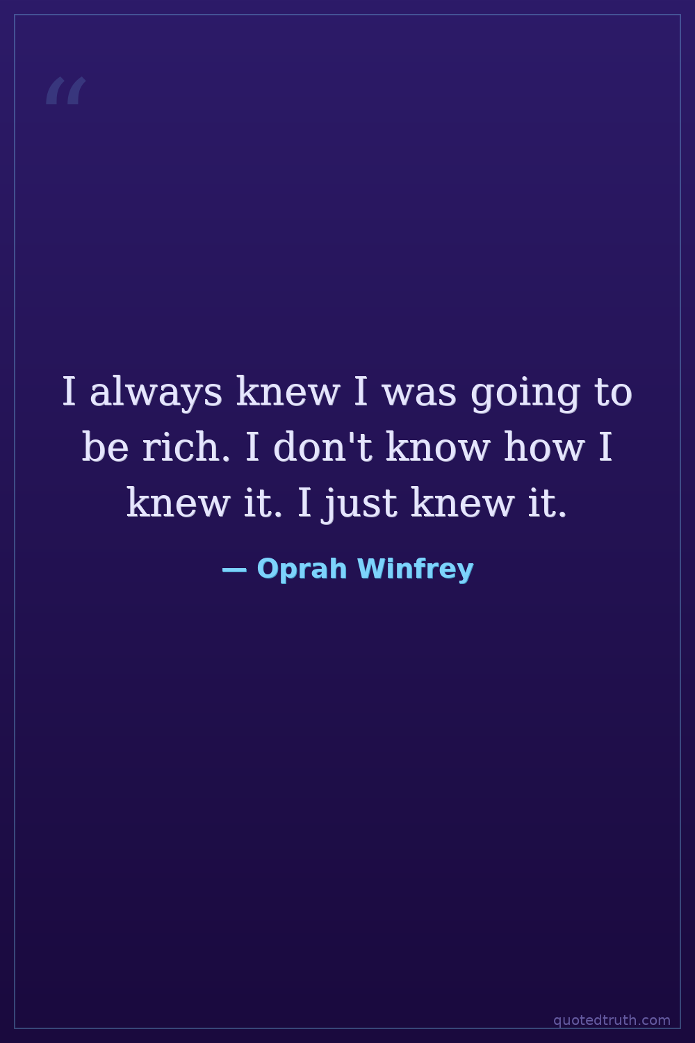 I always knew I was going to be rich. I don't know how I knew it. I just knew it.