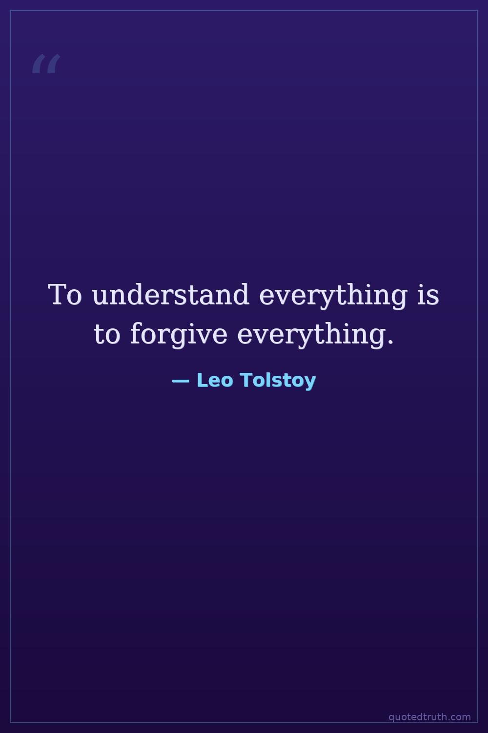 To understand everything is to forgive everything.