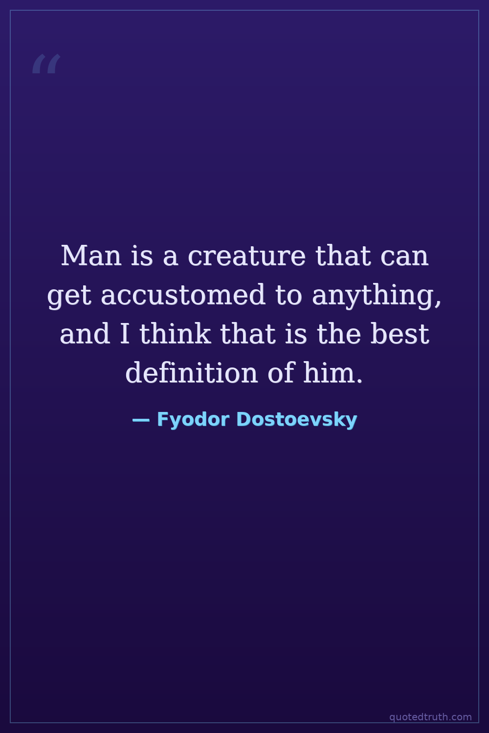Man is a creature that can get accustomed to anything, and I think that is the best definition of him.
