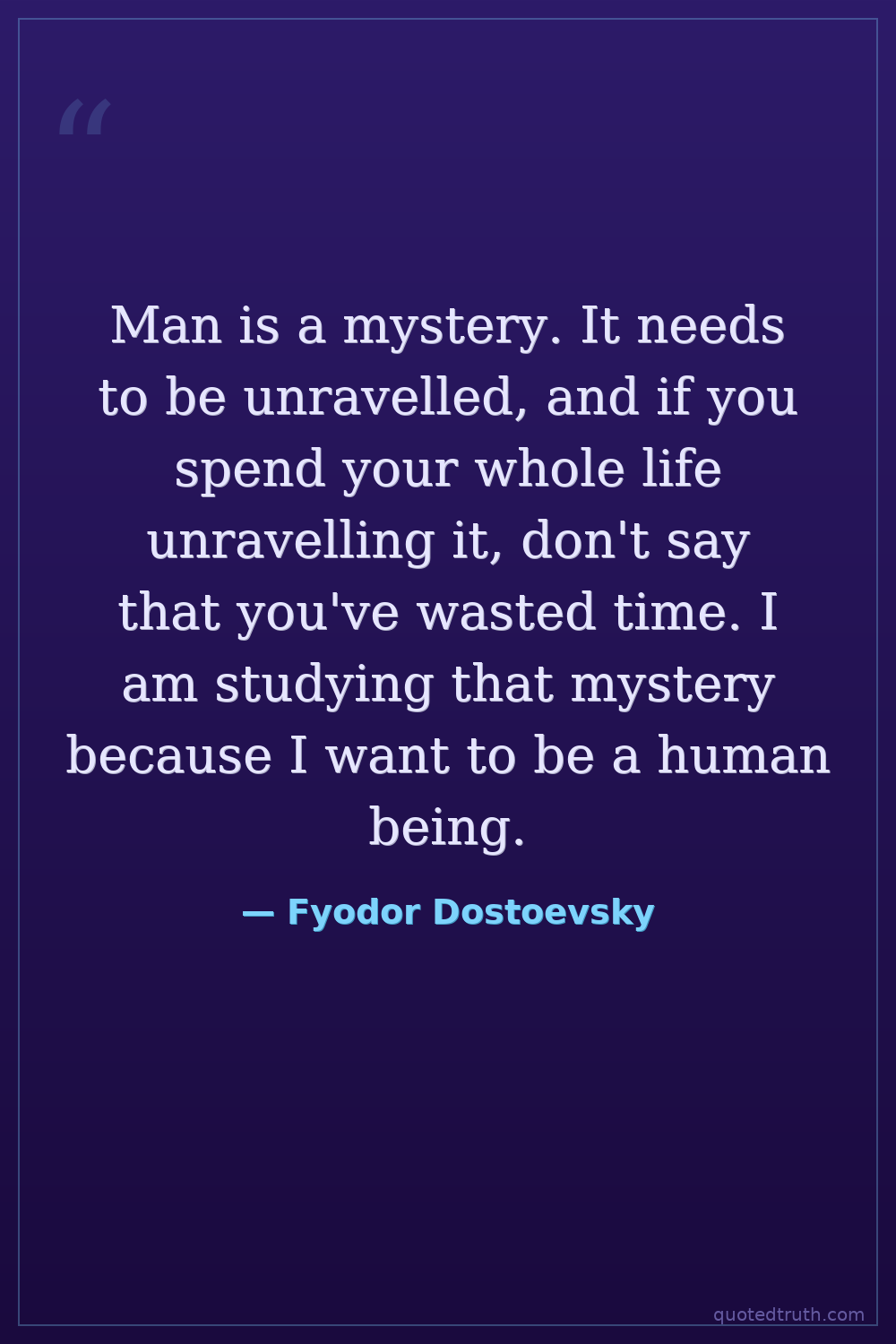 Man is a mystery. It needs to be unravelled, and if you spend your whole life unravelling it, don't say that you've wasted time. I am studying that mystery because I want to be a human being.