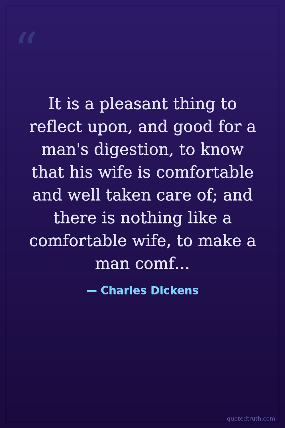 It is a pleasant thing to reflect upon, and good for a man's digestion, to know that his wife is comfortable and well taken care of; and there is nothing like a comfortable wife, to make a man comfortable.