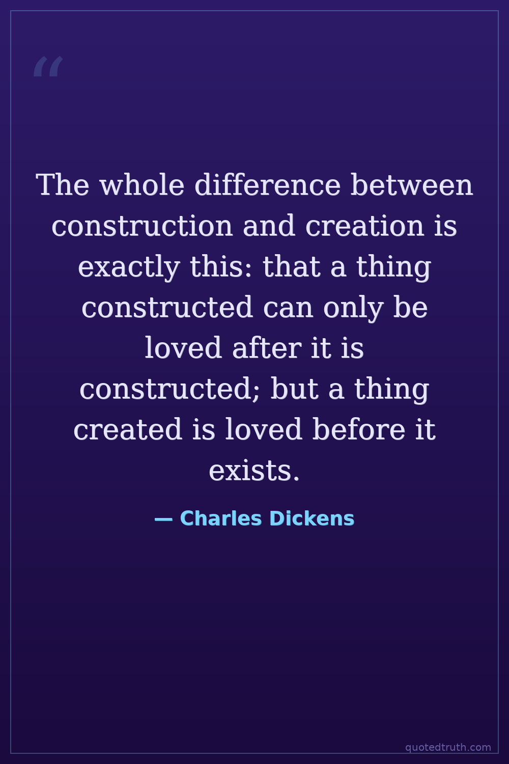 The whole difference between construction and creation is exactly this: that a thing constructed can only be loved after it is constructed; but a thing created is loved before it exists.