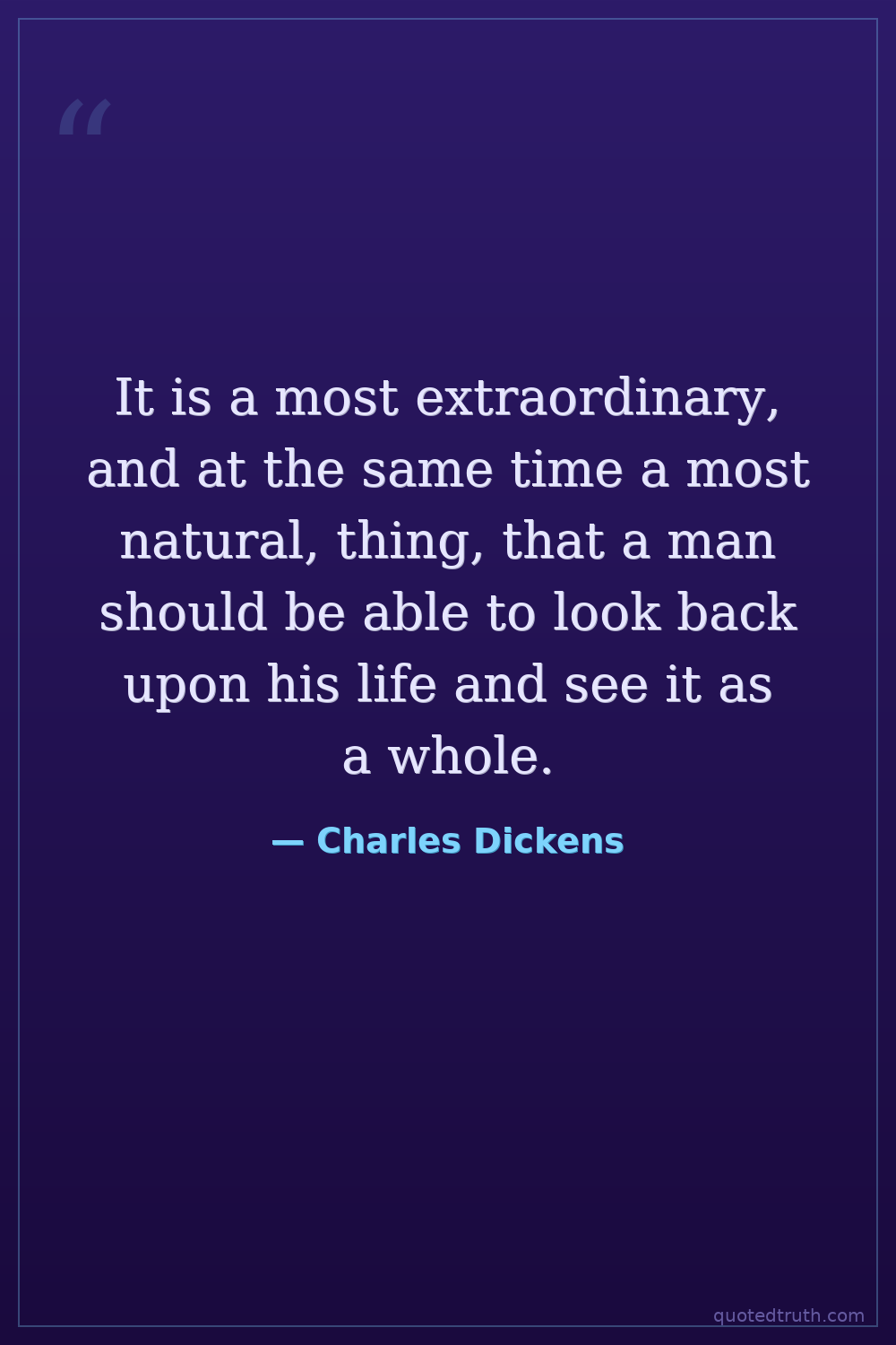 It is a most extraordinary, and at the same time a most natural, thing, that a man should be able to look back upon his life and see it as a whole.