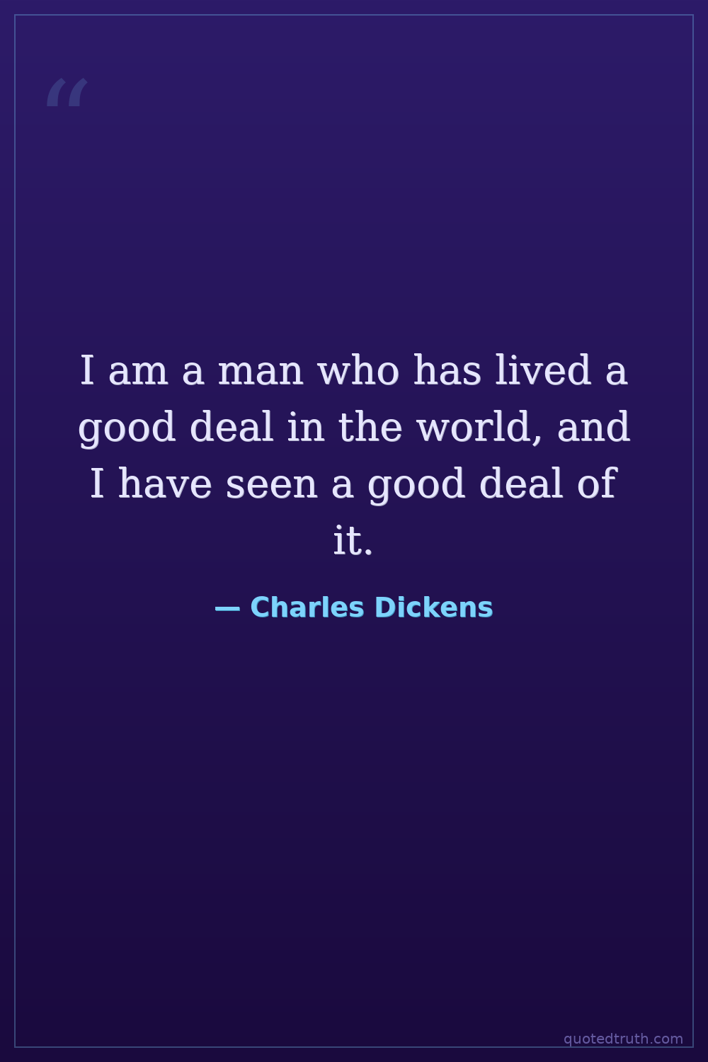 I am a man who has lived a good deal in the world, and I have seen a good deal of it.