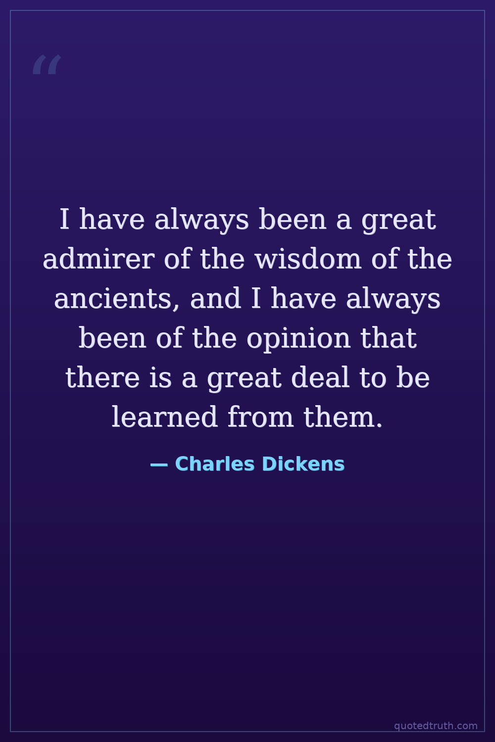I have always been a great admirer of the wisdom of the ancients, and I have always been of the opinion that there is a great deal to be learned from them.