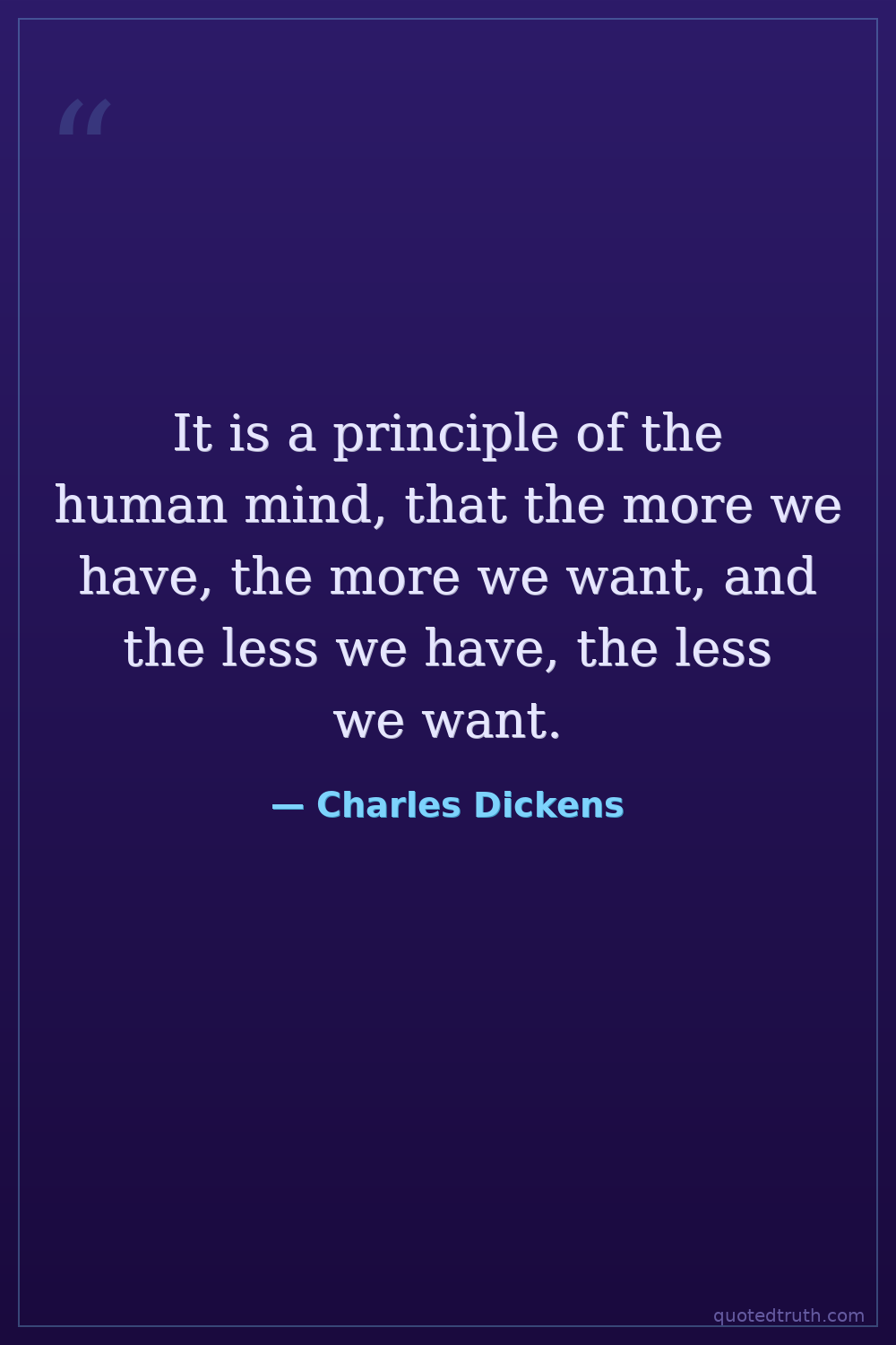 It is a principle of the human mind, that the more we have, the more we want, and the less we have, the less we want.