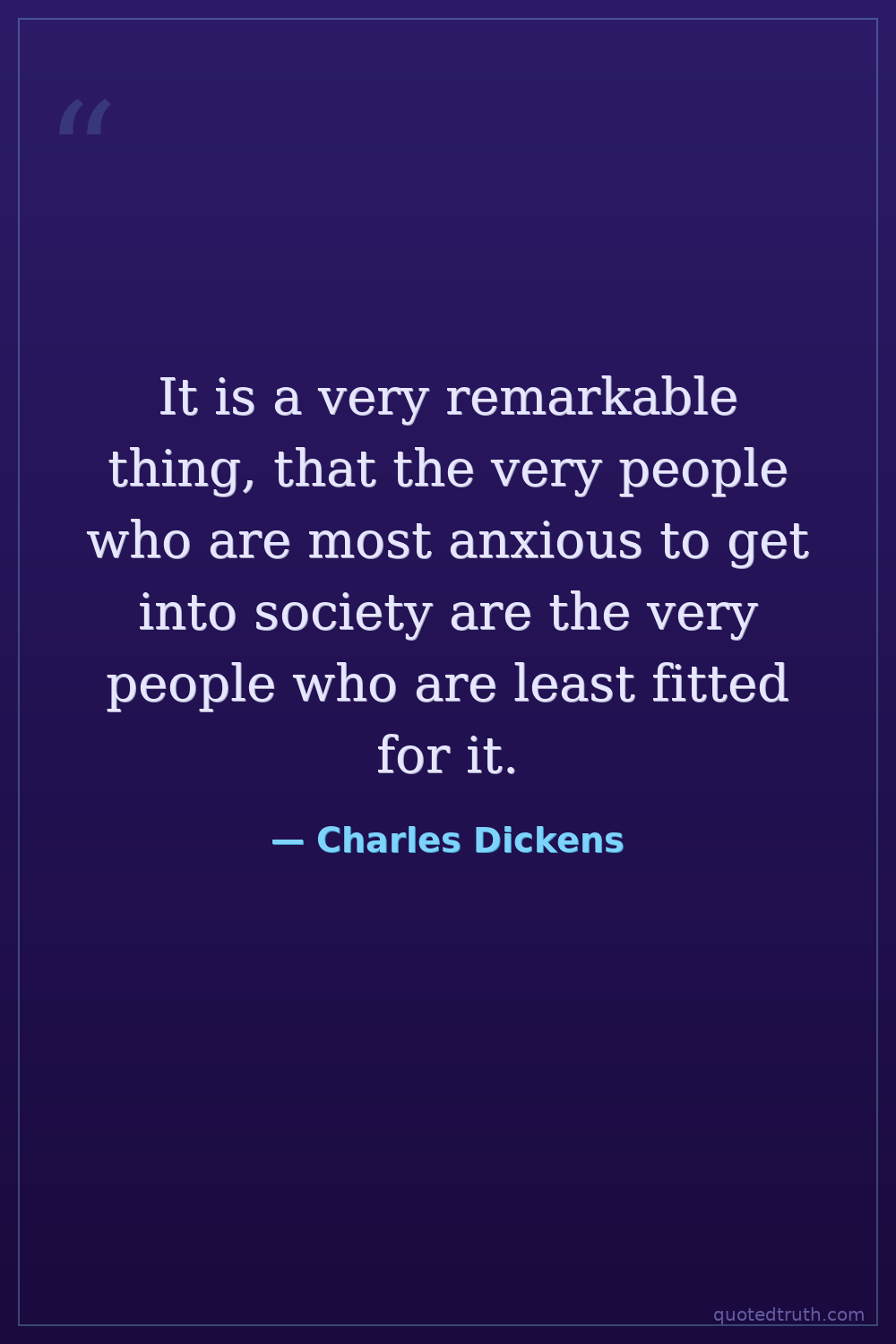 It is a very remarkable thing, that the very people who are most anxious to get into society are the very people who are least fitted for it.