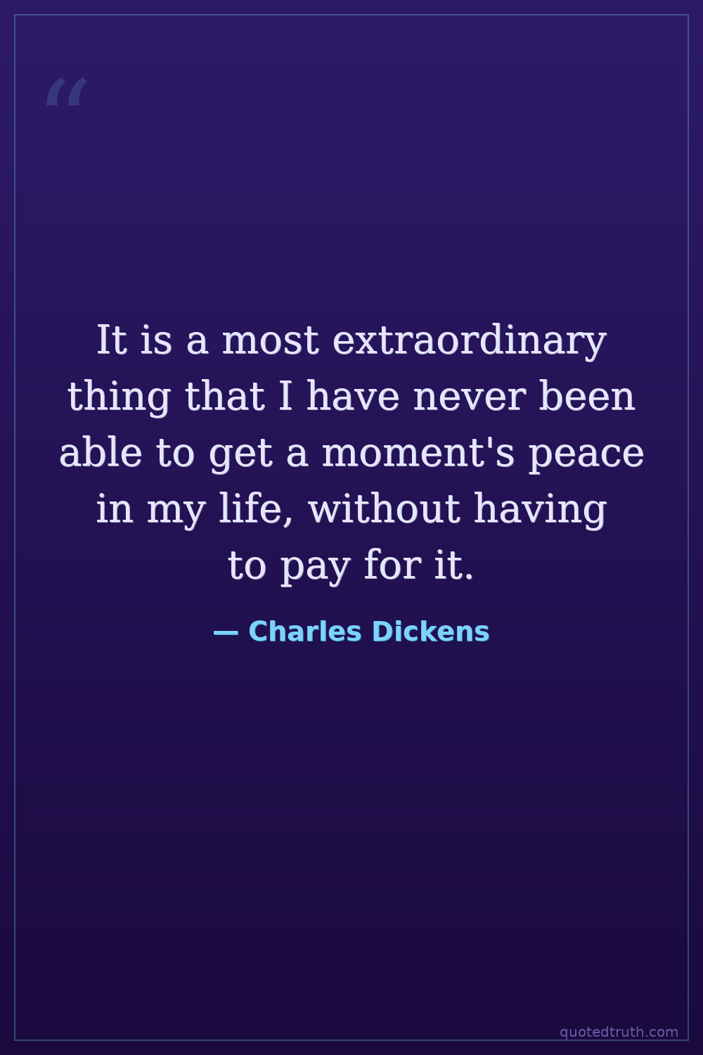 It is a most extraordinary thing that I have never been able to get a moment's peace in my life, without having to pay for it.